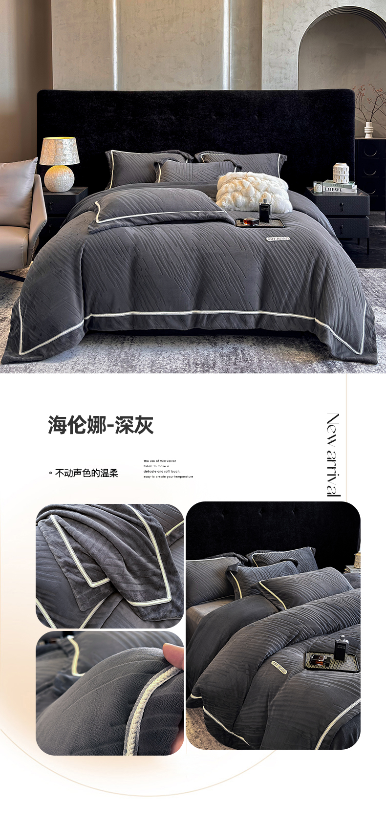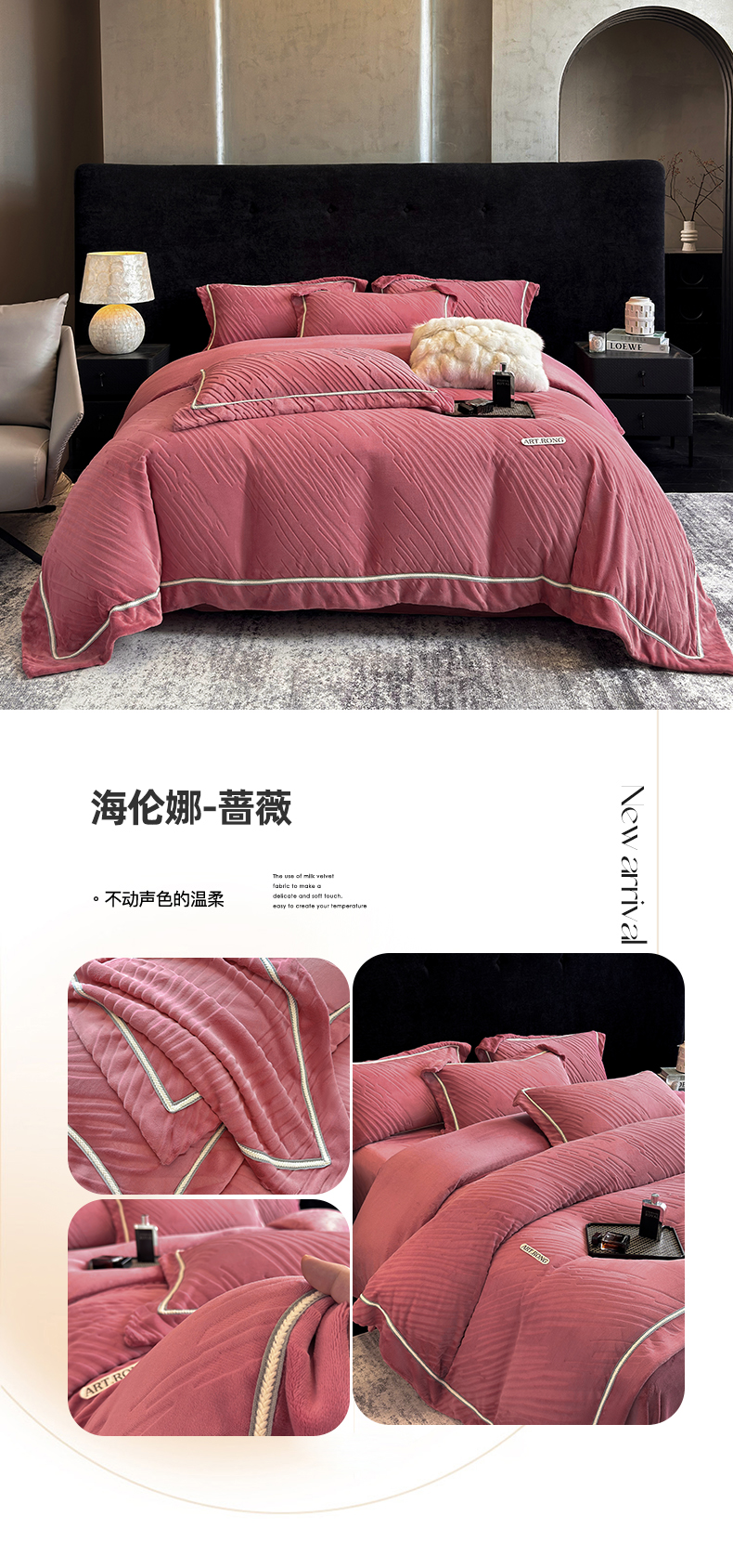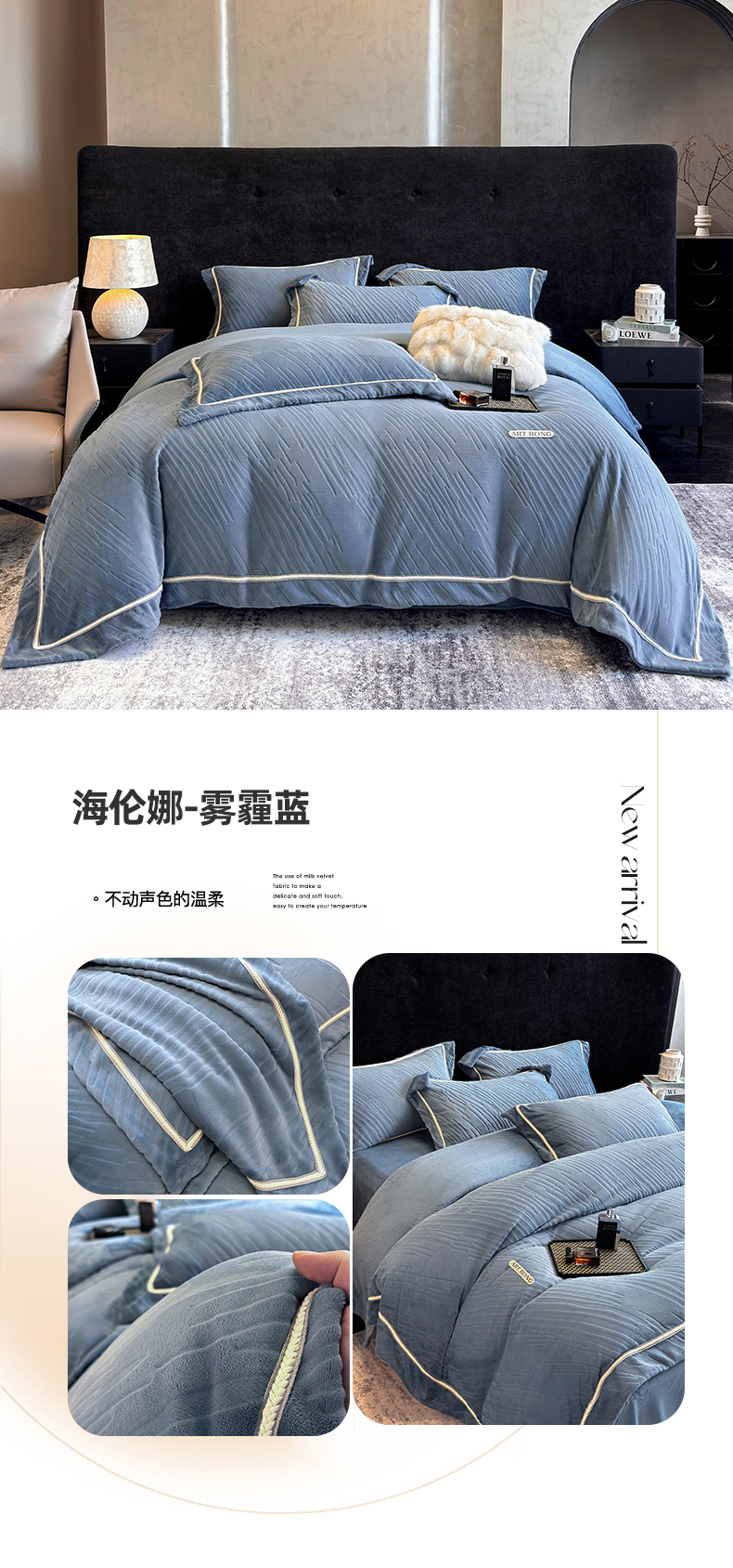 (总)首尔家纺 2025新款雕花牛奶绒宽边织带款四件套-海伦娜系列