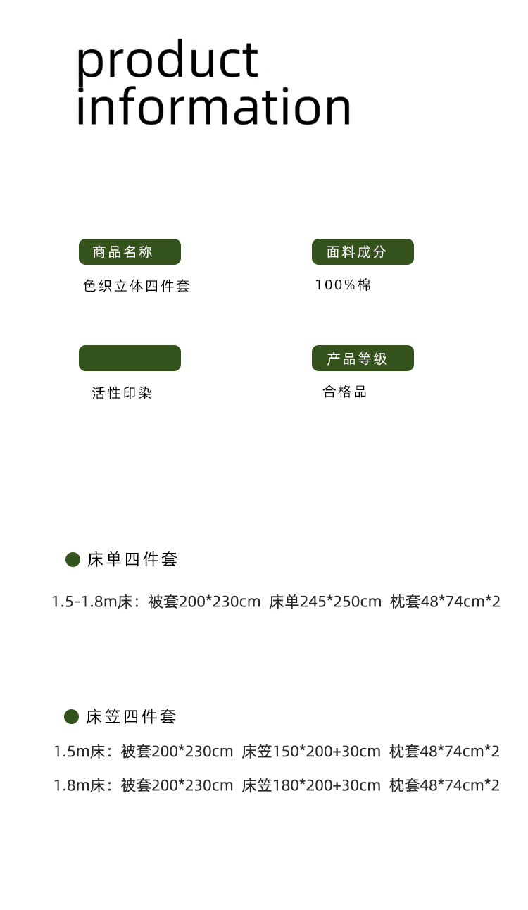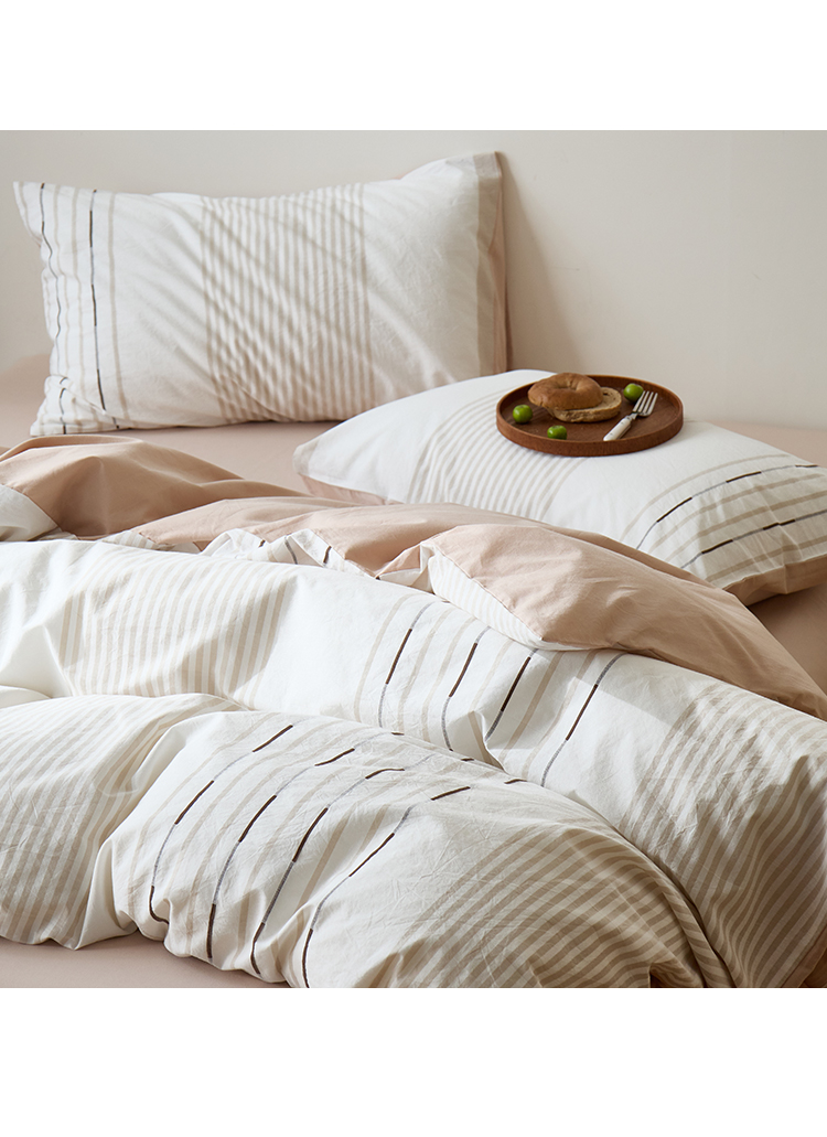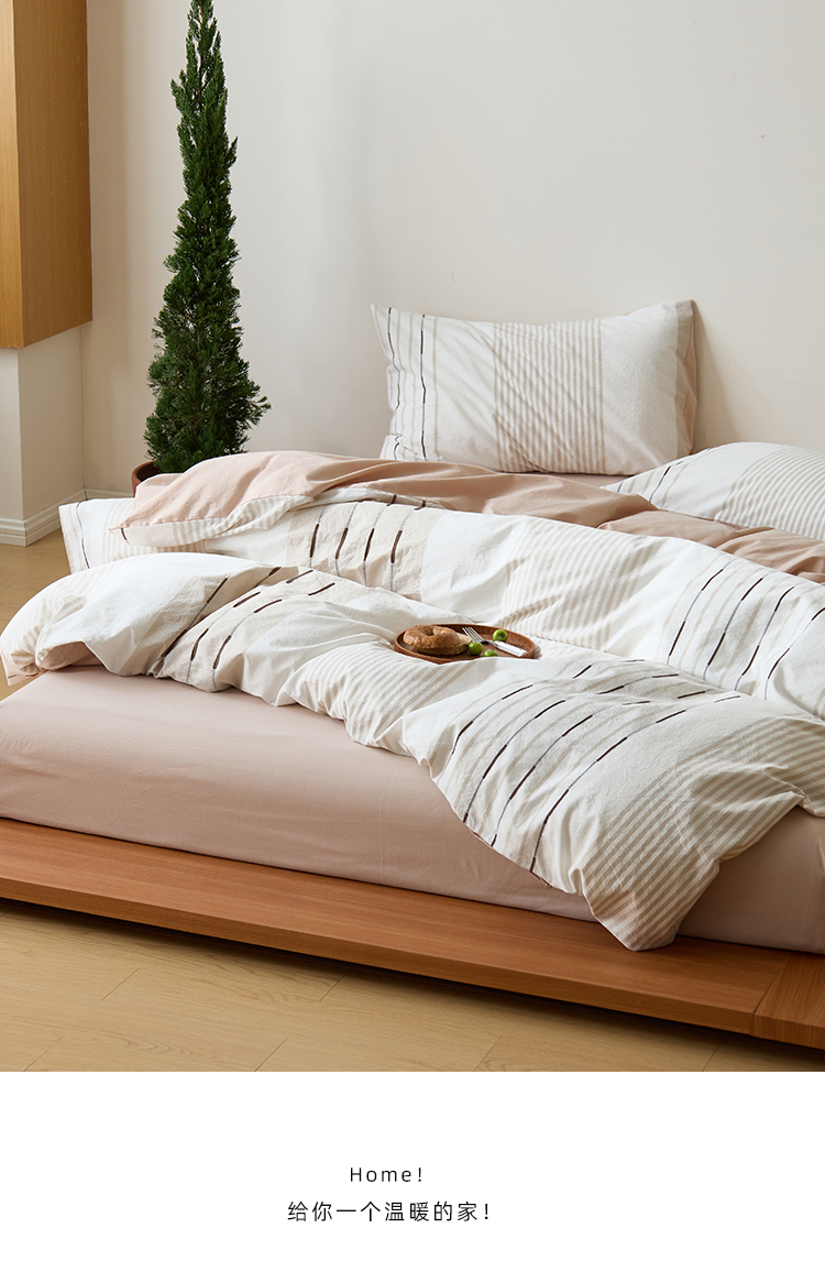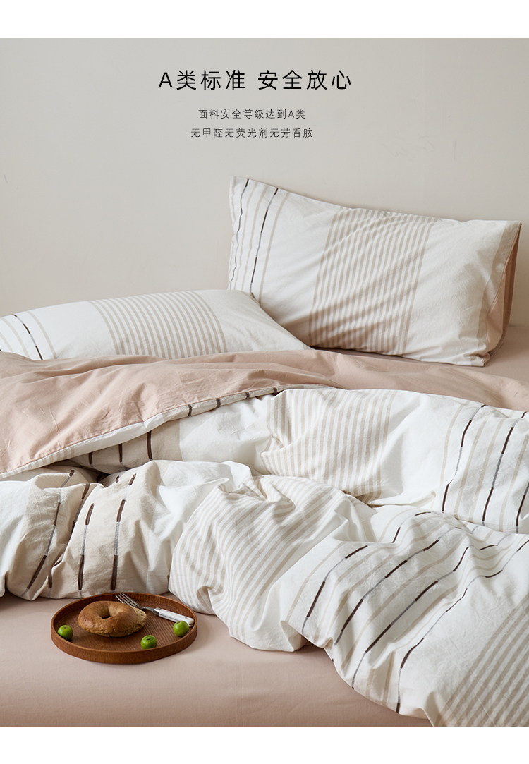 商品名称:Mr.pig猪先生水洗棉 2025新款全棉色织立体四件套 气质咖