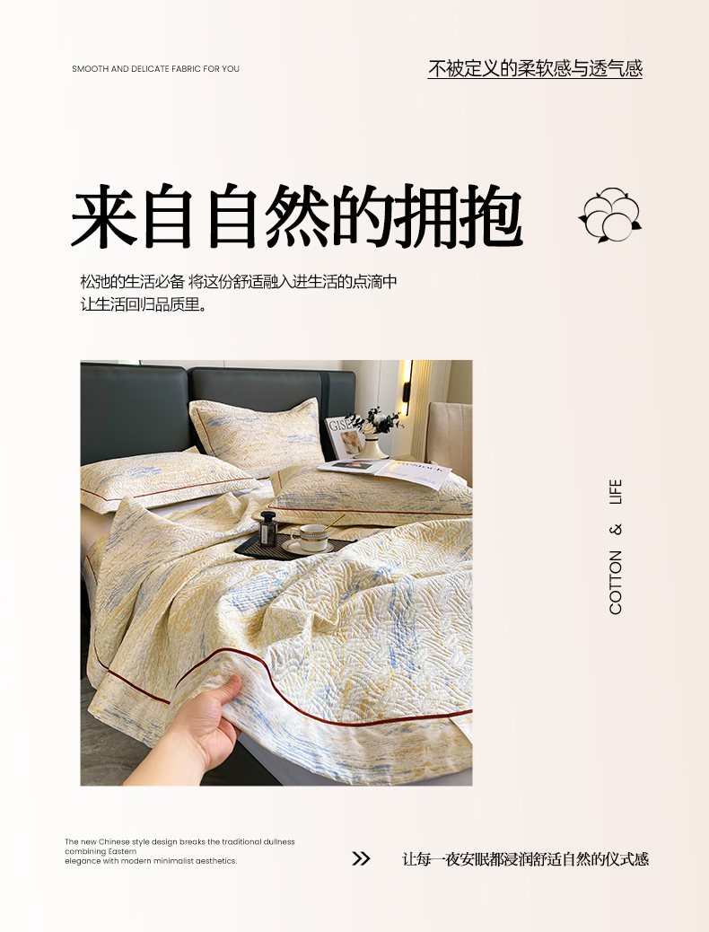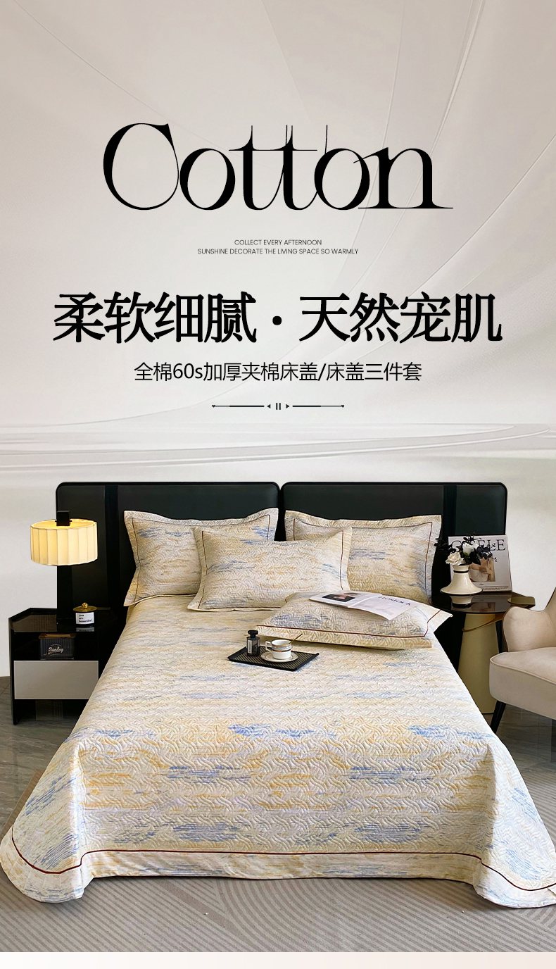 • 91家纺网 家纺一手货源 找家纺 畅畅家纺 2025春夏款13372全棉纯棉活性印花床盖夹棉加厚绗缝防滑床罩 简兮