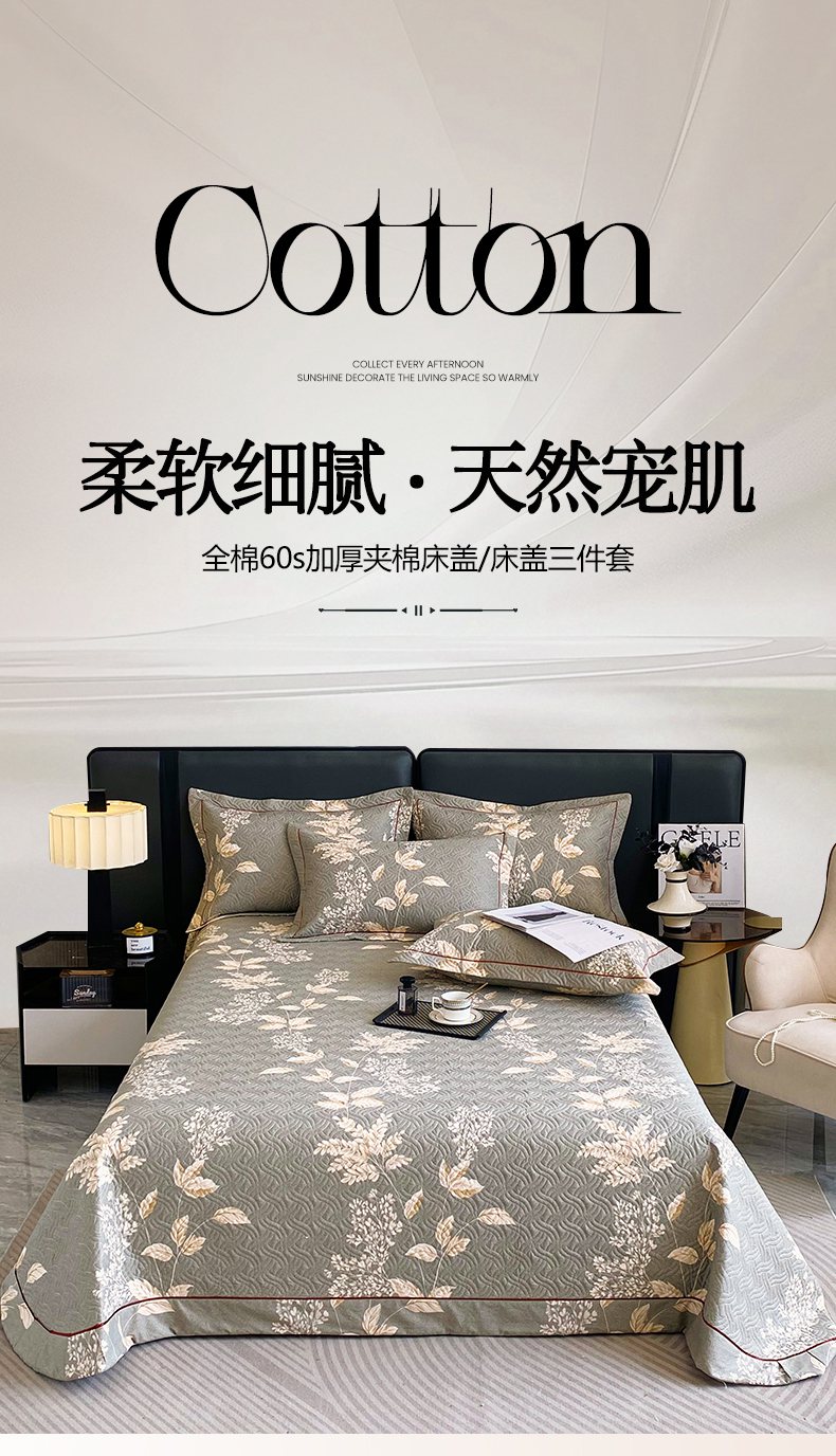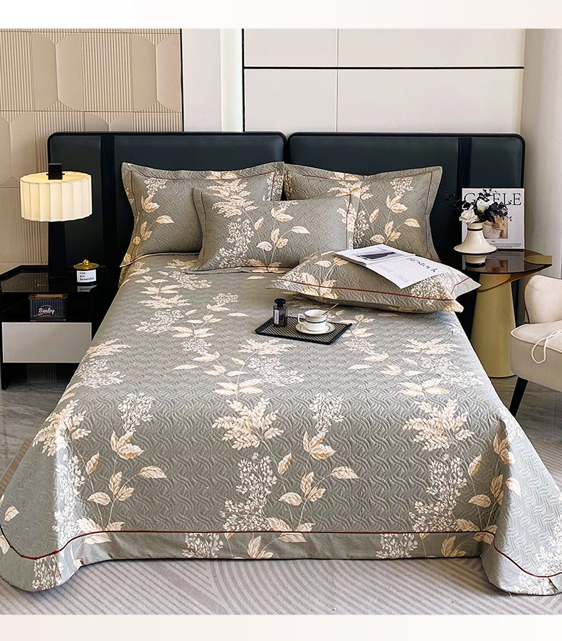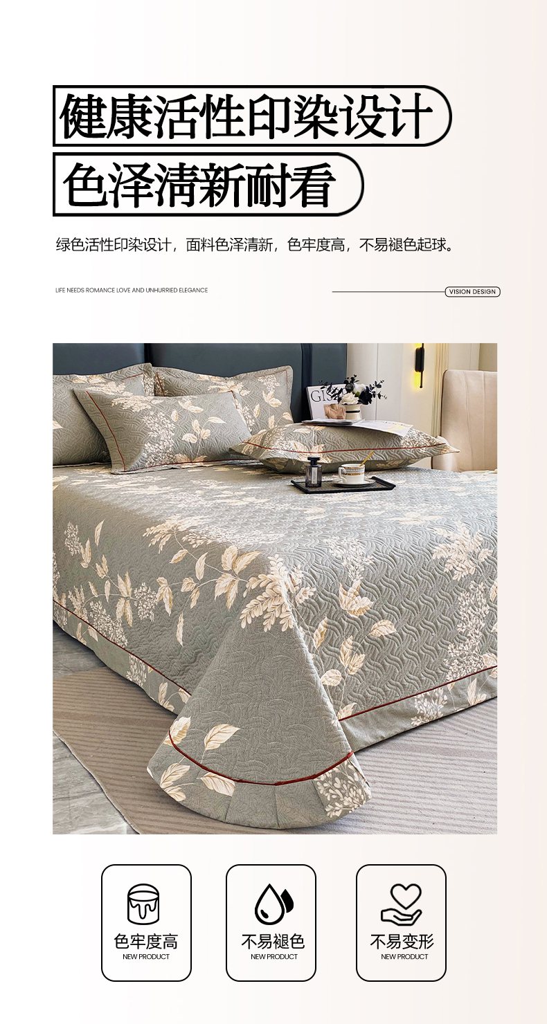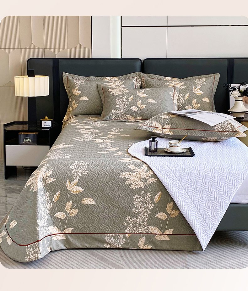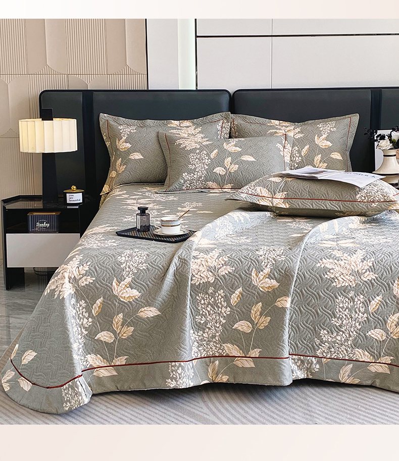 • 91家纺网 家纺一手货源 找家纺 畅畅家纺 2025春夏款13372全棉纯棉活性印花床盖夹棉加厚绗缝防滑床罩 枝繁叶茂灰