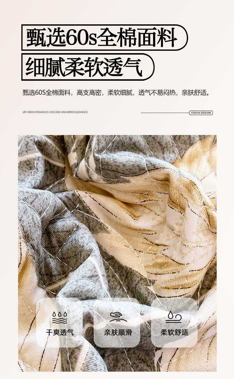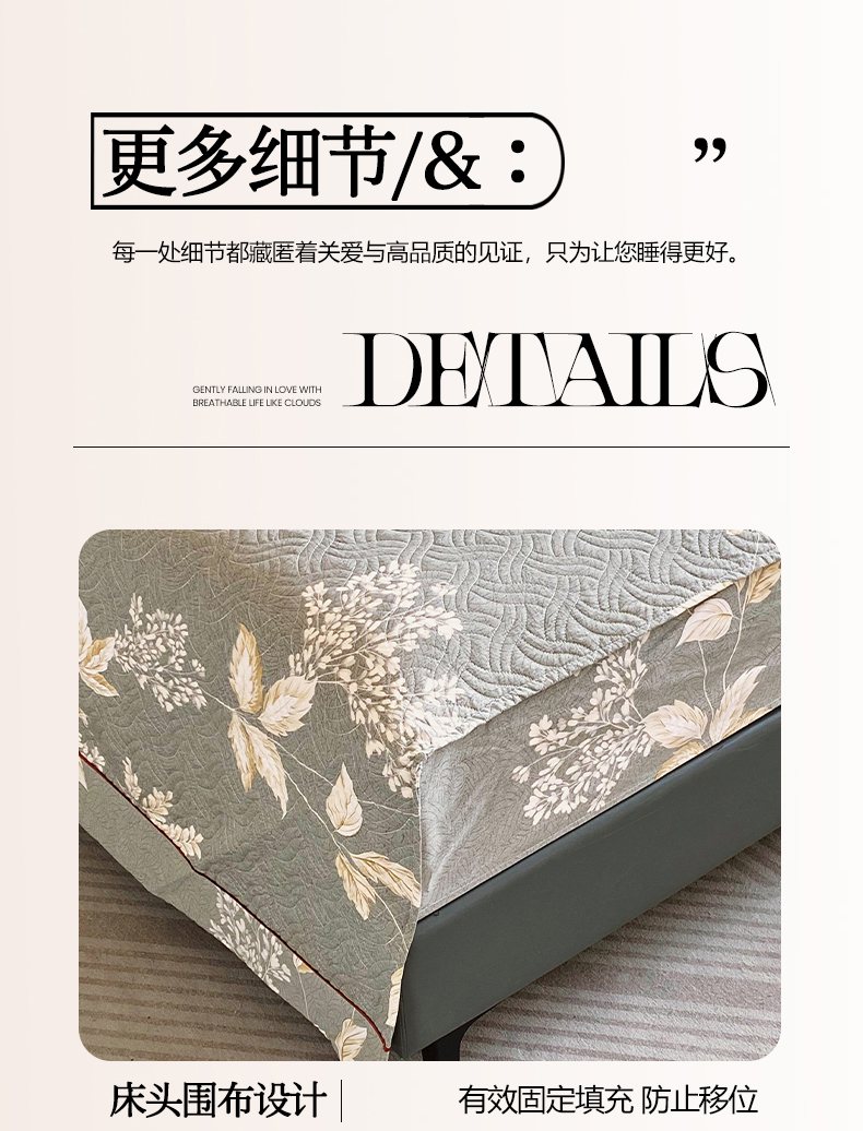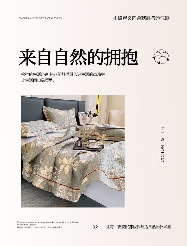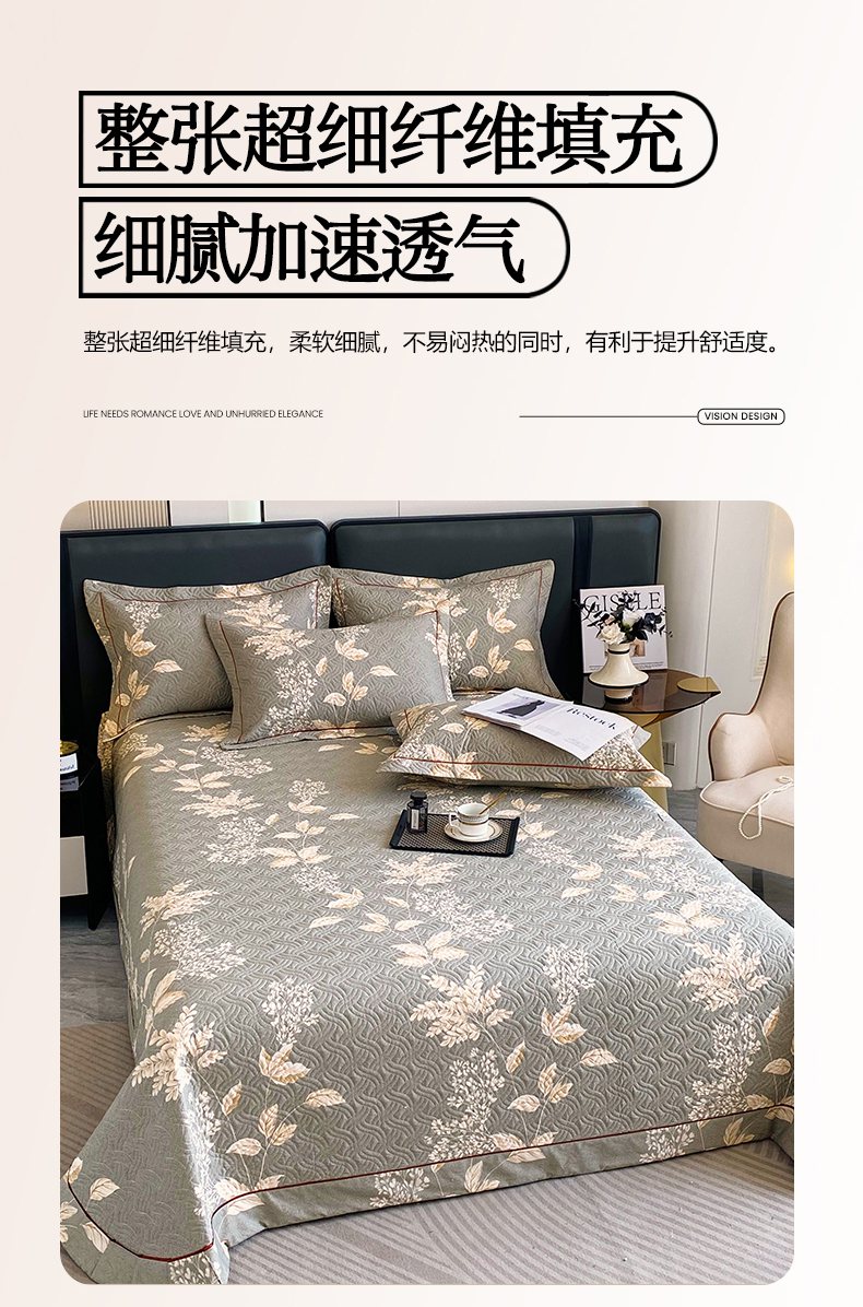 • 91家纺网 家纺一手货源 找家纺 畅畅家纺 2025春夏款13372全棉纯棉活性印花床盖夹棉加厚绗缝防滑床罩 枝繁叶茂灰