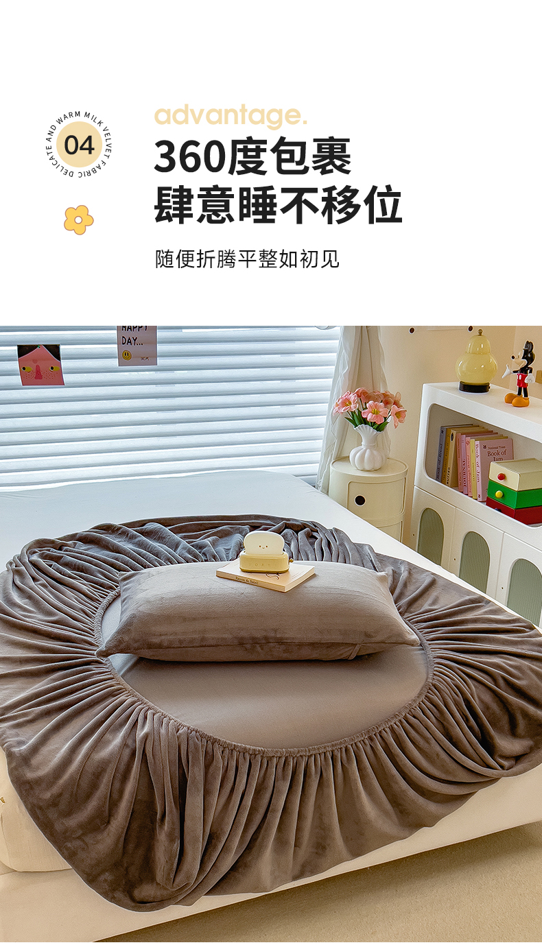 商品名称:(总)丽美人家纺 2025秋冬新款牛奶绒纯色单床笠