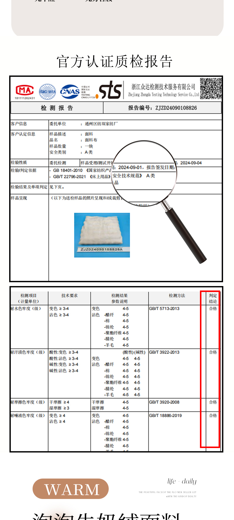 4、通州区市场监管局川姜分局友情提醒:近期针对抗静电,无静电,抗菌防螨,及有关舒适度,百分比的举报高发。为不影响商品正常销售,请各商家高度重视,自检自查及时整改,谢谢配合!