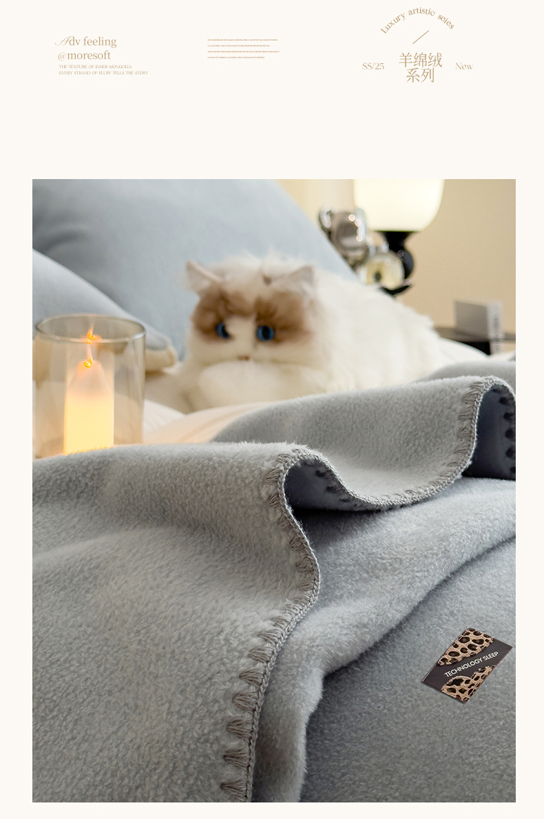 丝幔家纺 2025新款A类羊棉绒原创设计毛毯系列 湖蓝