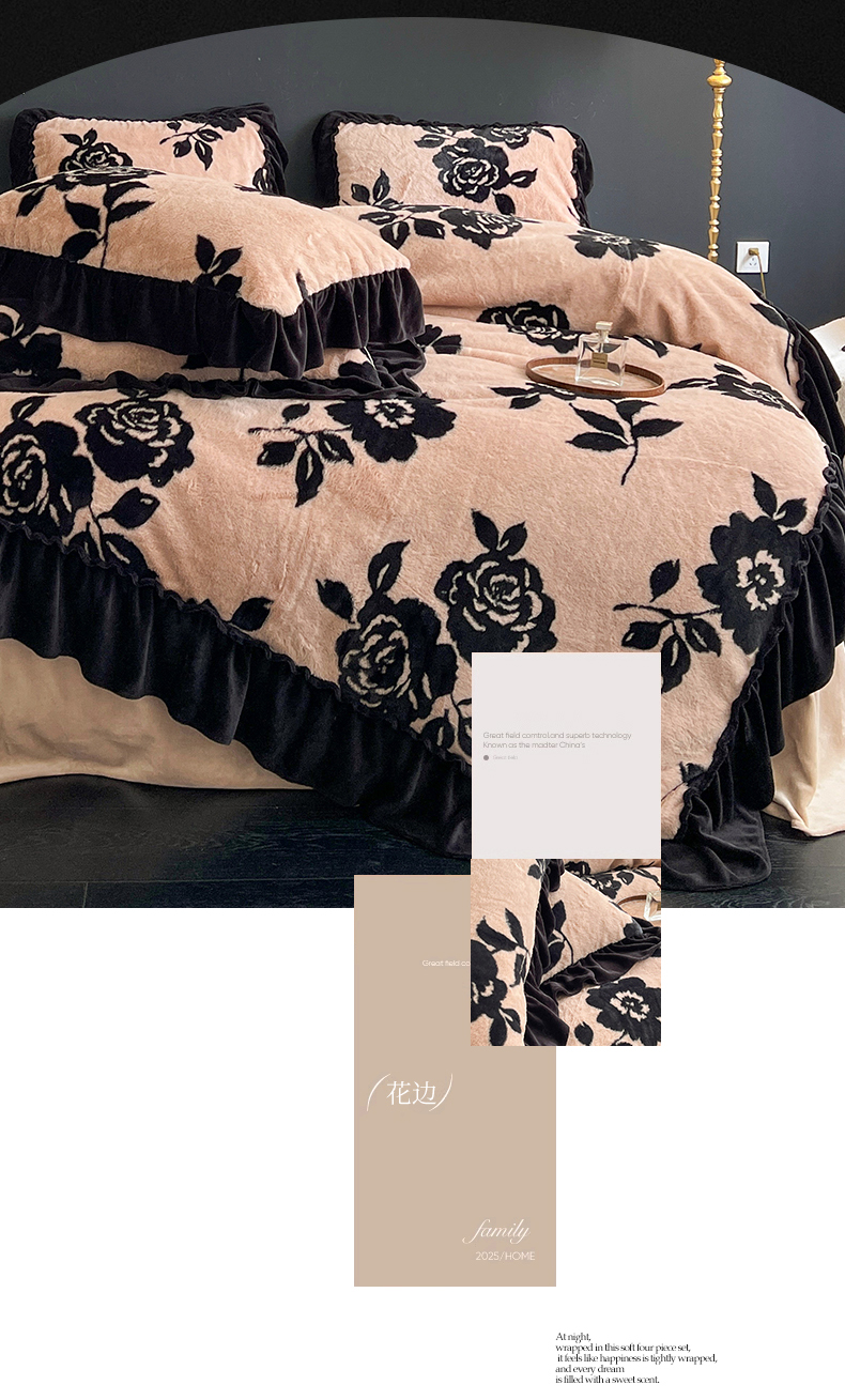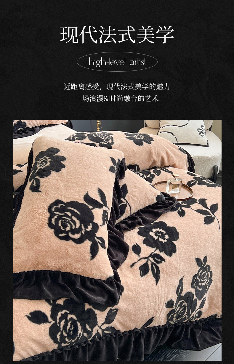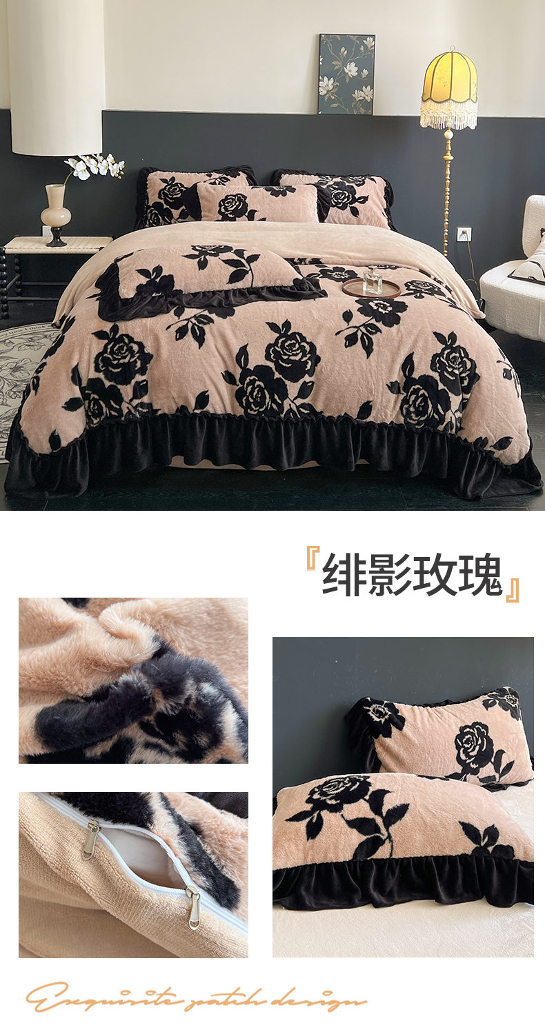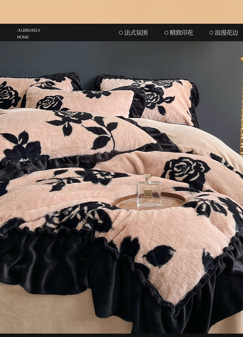 (总)奥裕家纺 2025新款法式美拉德雕花绒四件套,繁茵梦,蔓玫雅境,墨玫茵,线描玫瑰,香榭里,雅蔓
