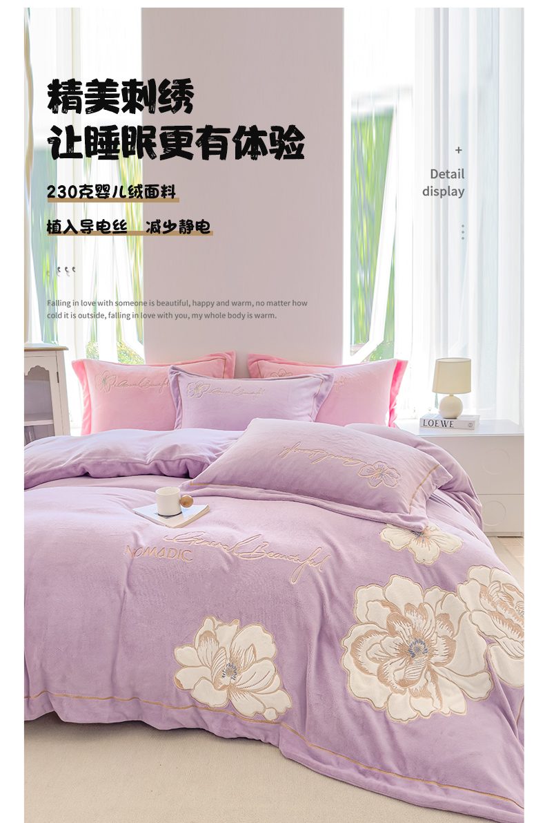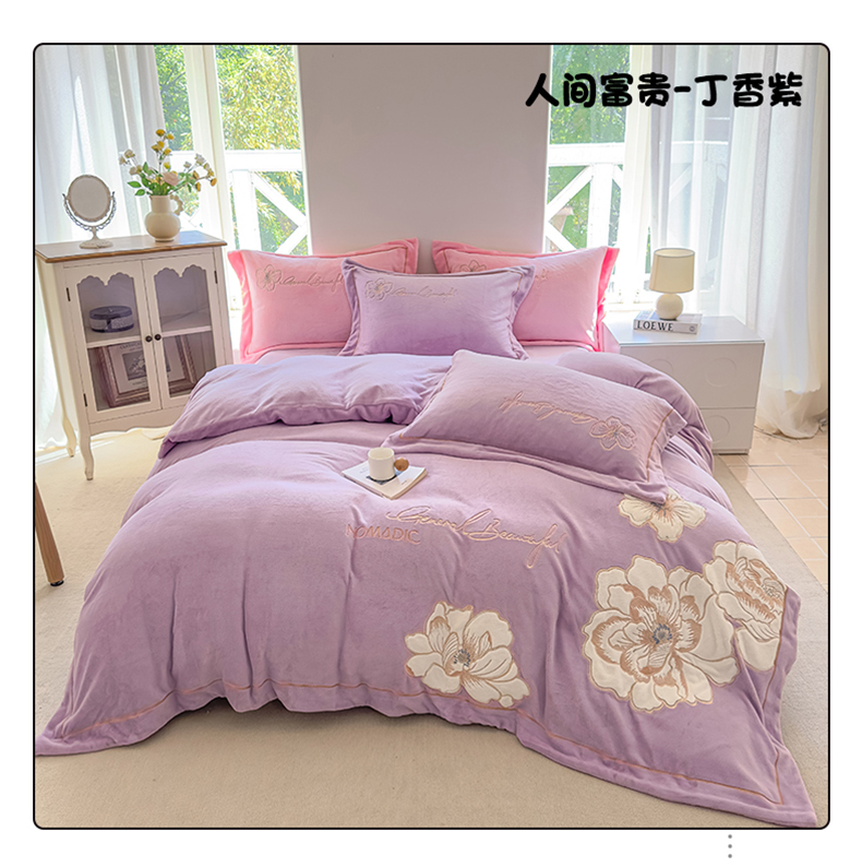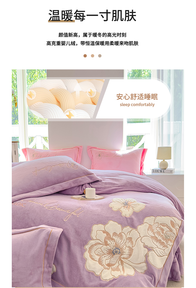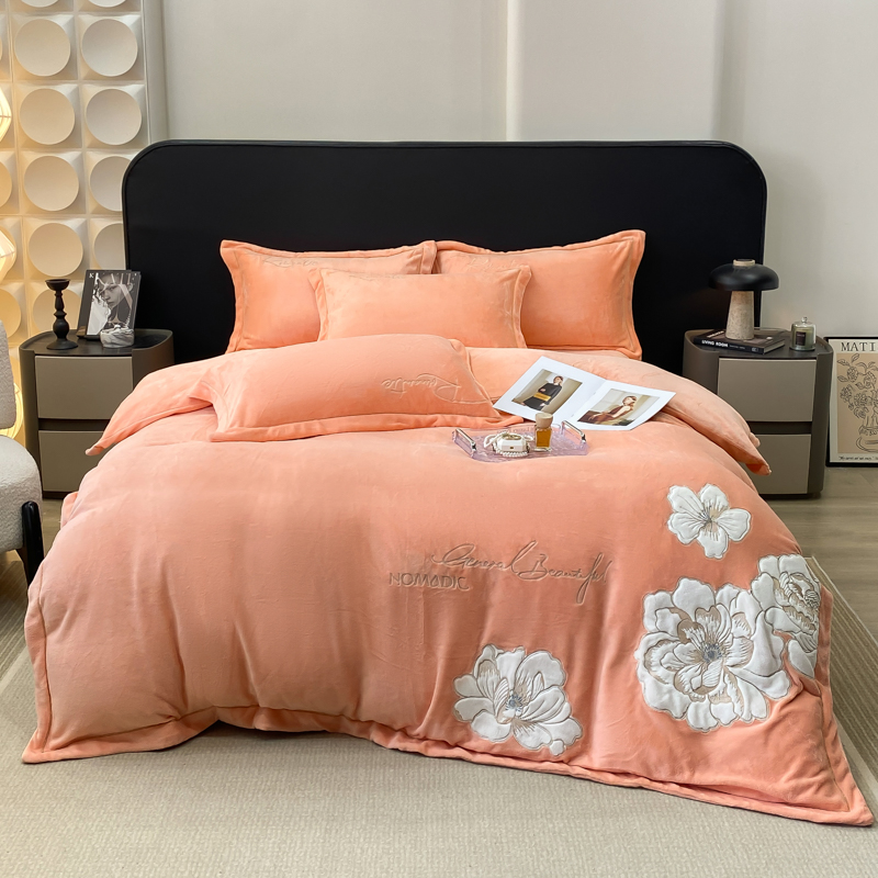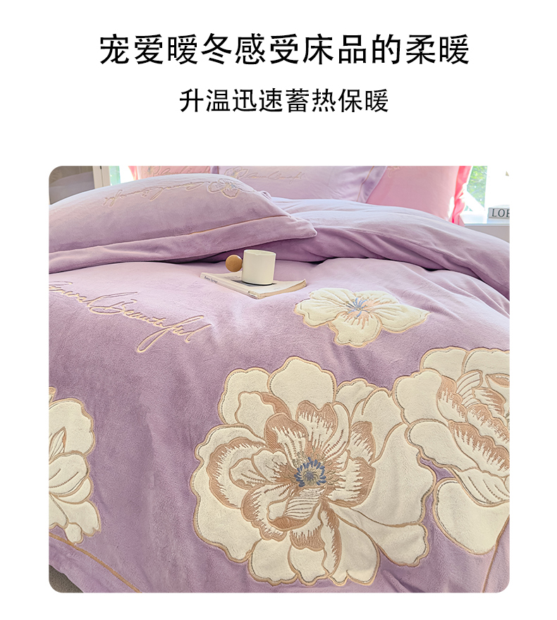当前位置: 91家纺网 > 商品网购 > 床品套件 > 四件套 > 牛奶绒四件套 > 悦织湾家纺 2025新款9斤重牛奶绒四件套纯色贴布绣人件富贵系列240克重高密保暖轻奢时尚床上用品4件套 人间富贵-暖玉