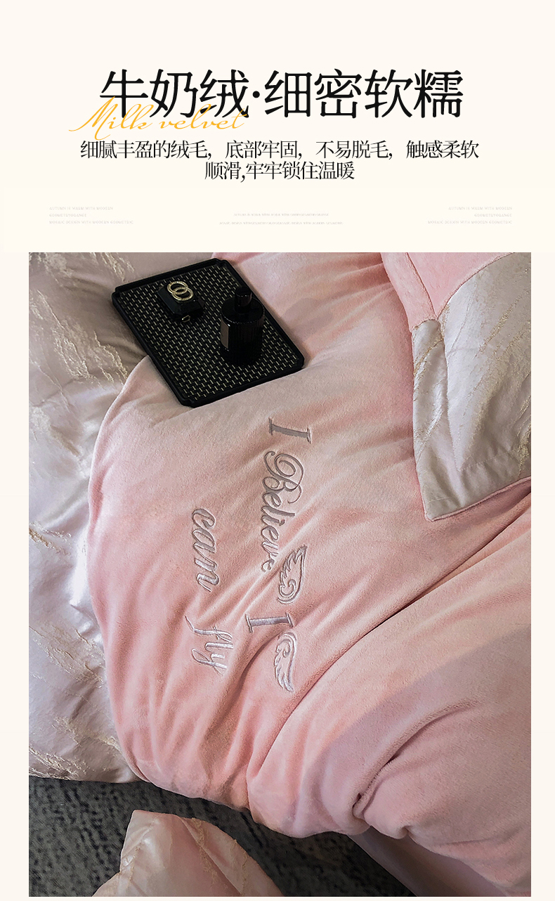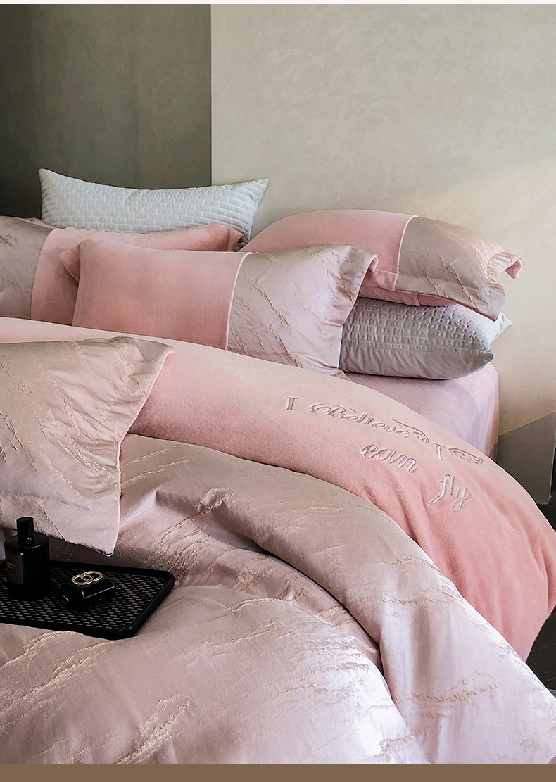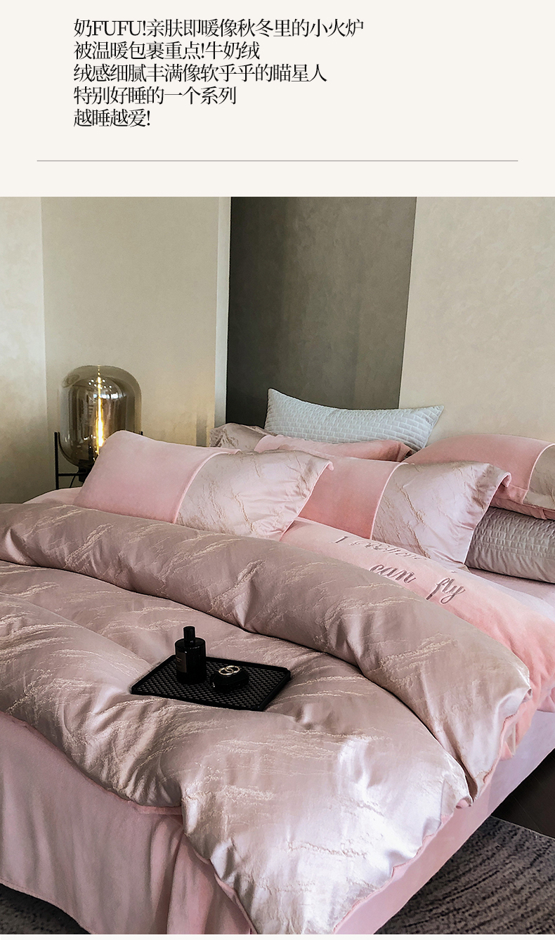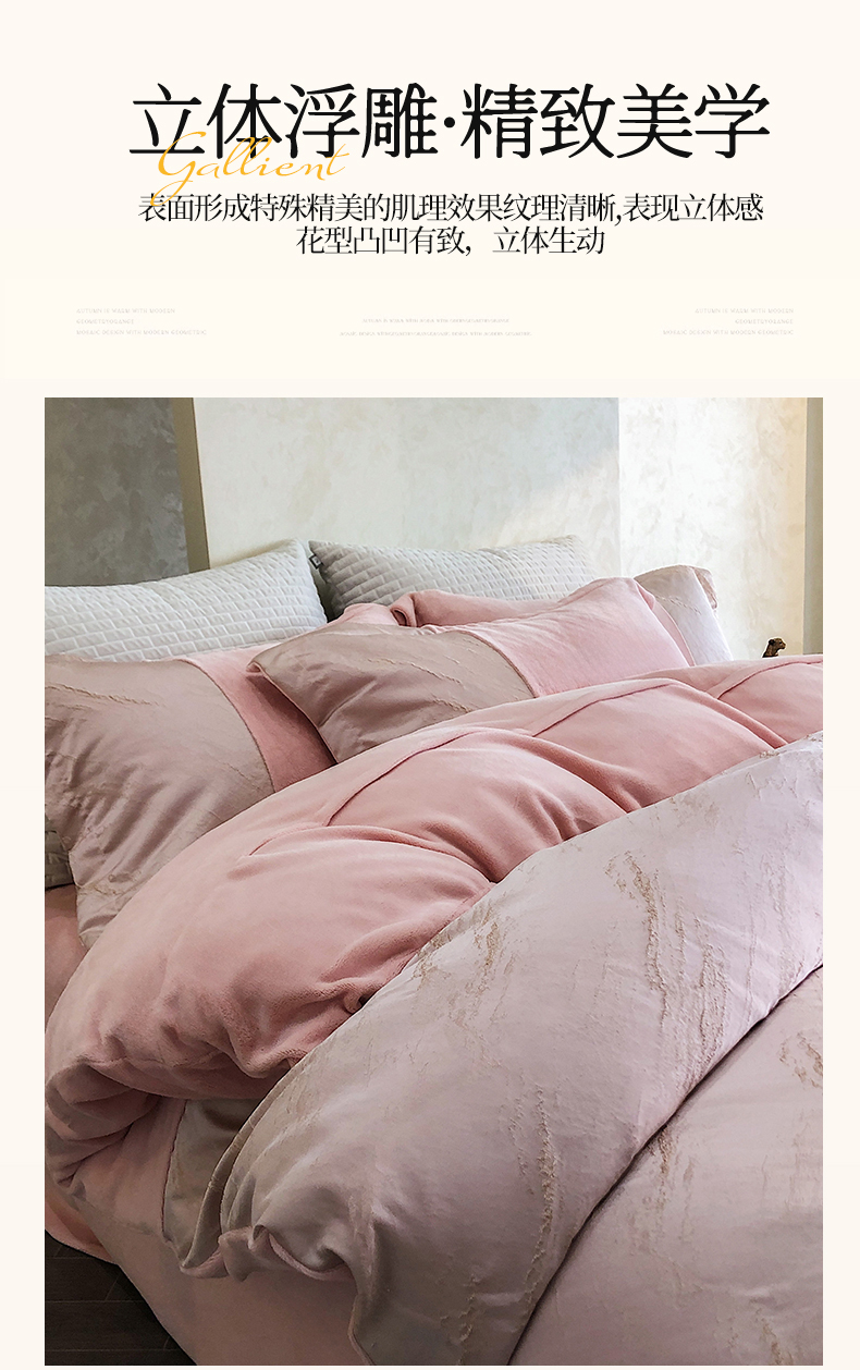 商品名称:换种生活 2025新款A类浮雕牛奶绒刺绣四件套 水漾-粉