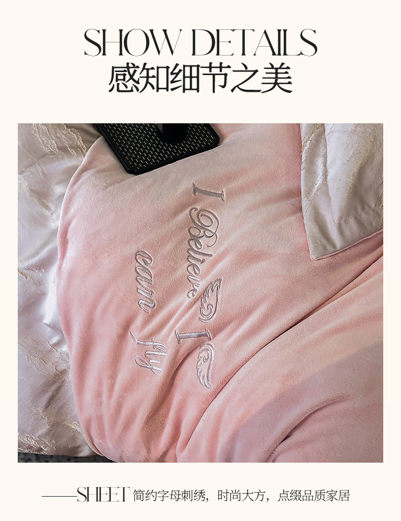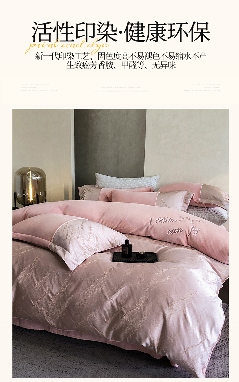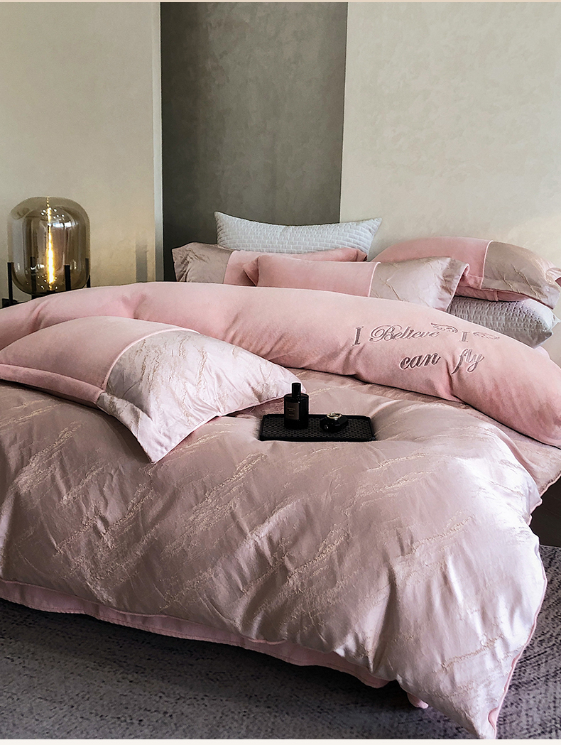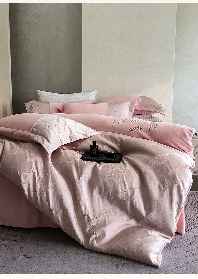 商品名称:换种生活 2025新款A类浮雕牛奶绒刺绣四件套 水漾-粉