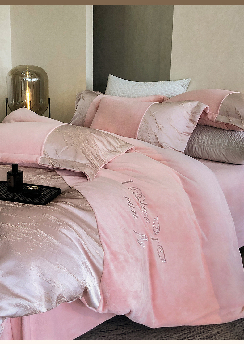 换种生活 2025新款A类浮雕牛奶绒刺绣四件套 水漾-粉