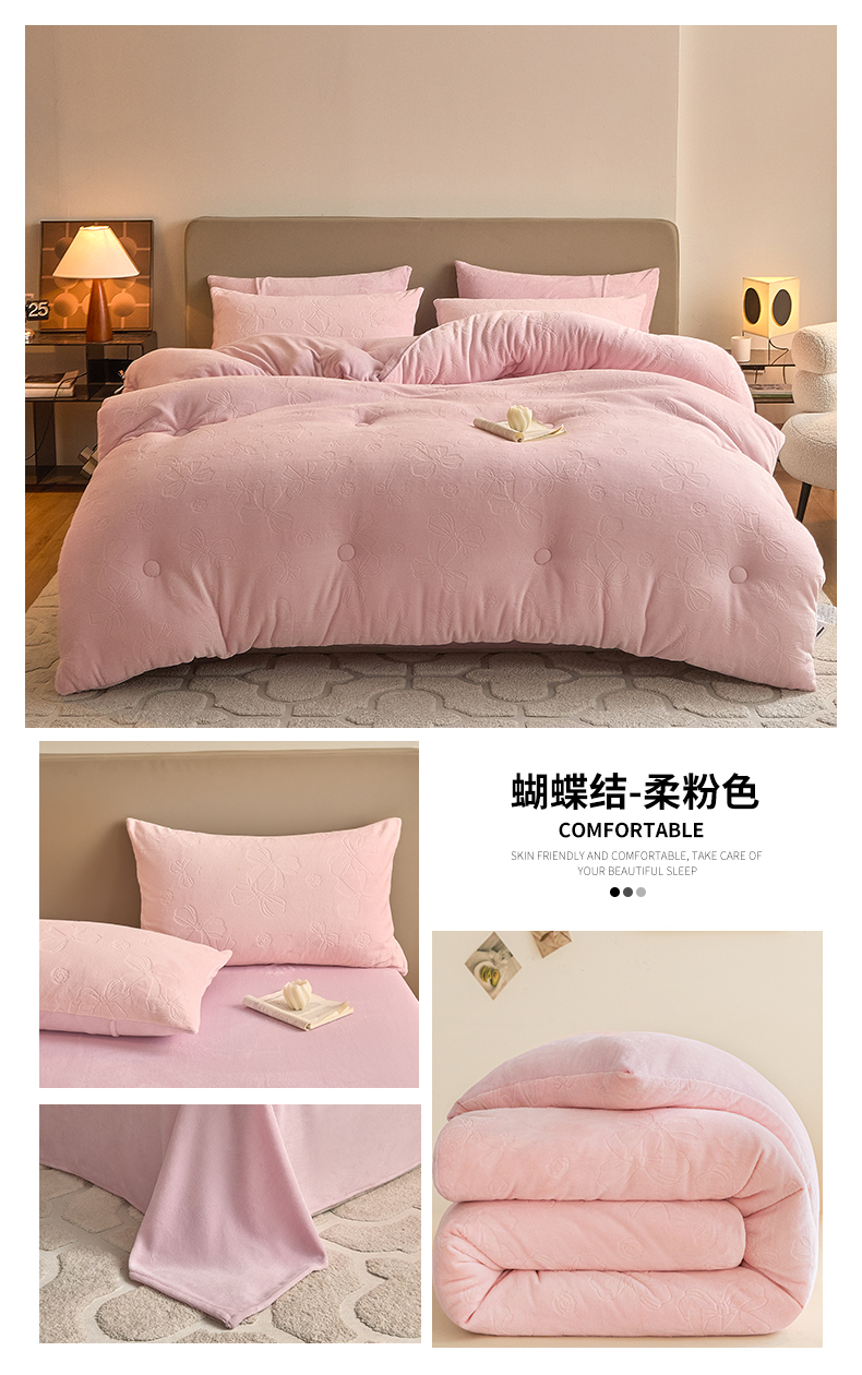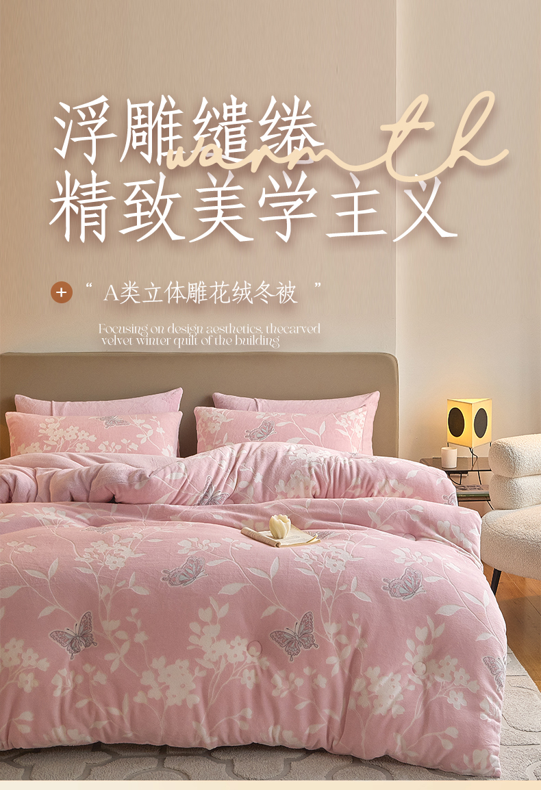商品名称:换种生活 2025新款A类立体雕花绒冬被被子被芯 蝶舞花漾-浅粉色