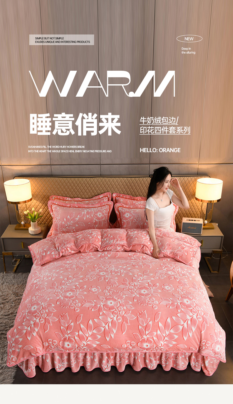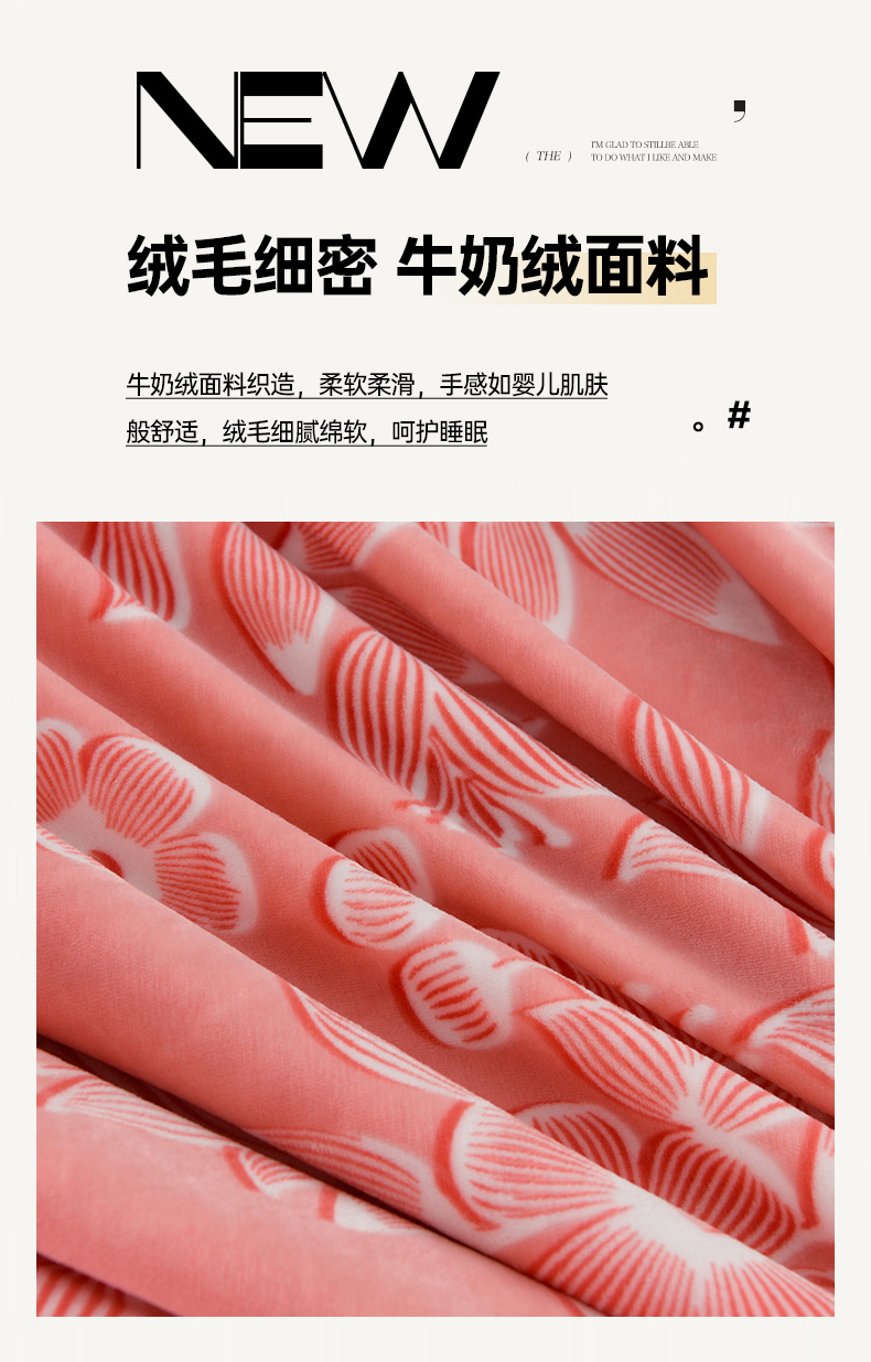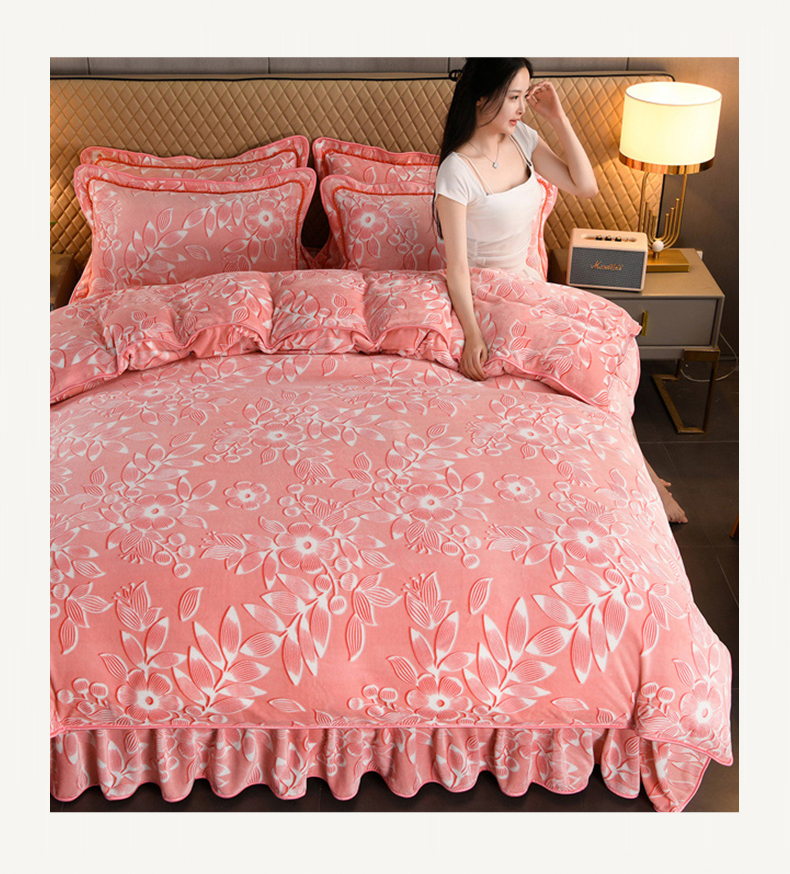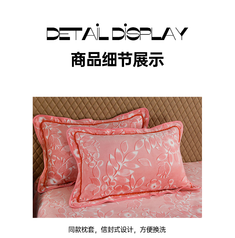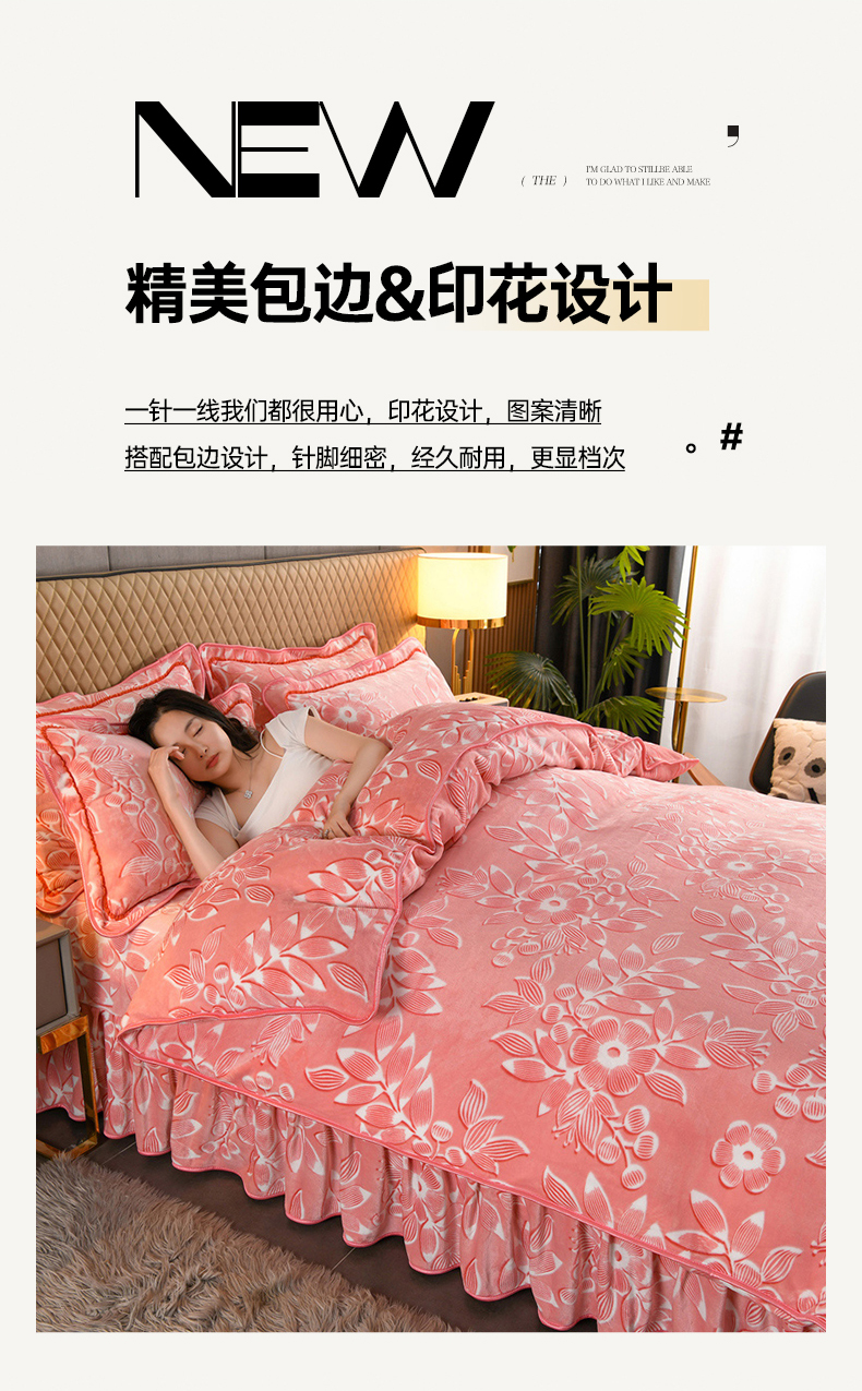 商品名称:牵依 2025新款牛奶绒小包边印花四件套 爱莎粉
