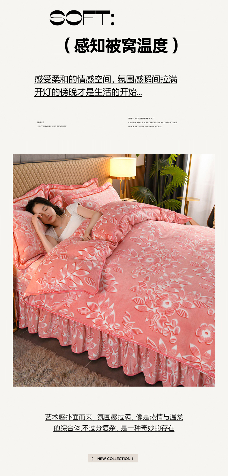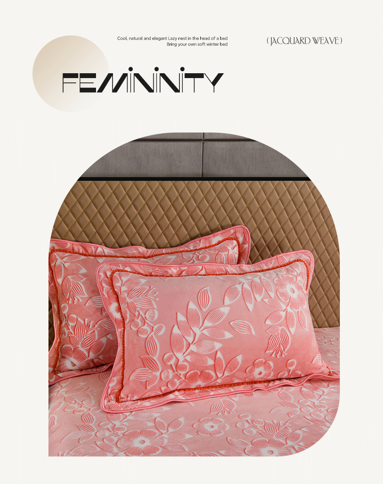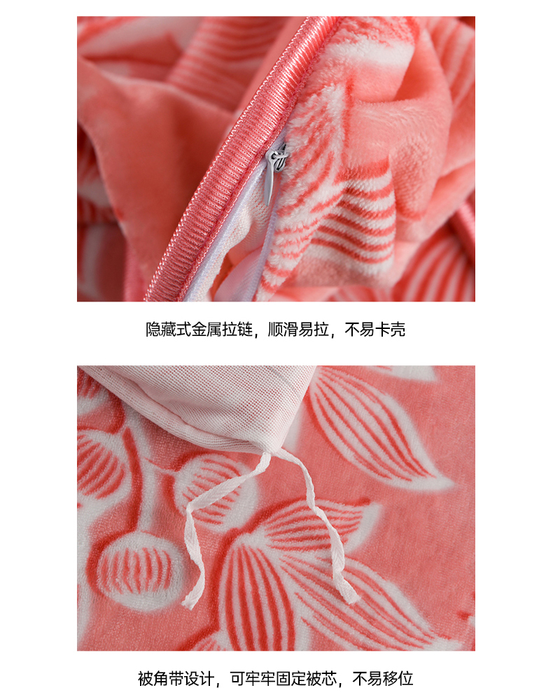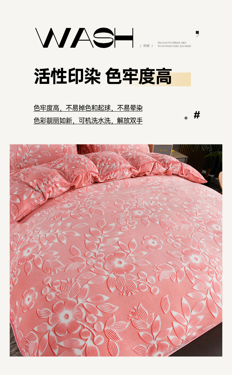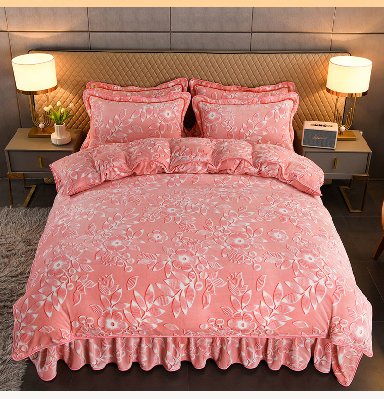 商品名称:牵依 2025新款牛奶绒小包边印花四件套 爱莎粉