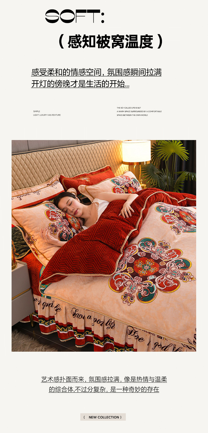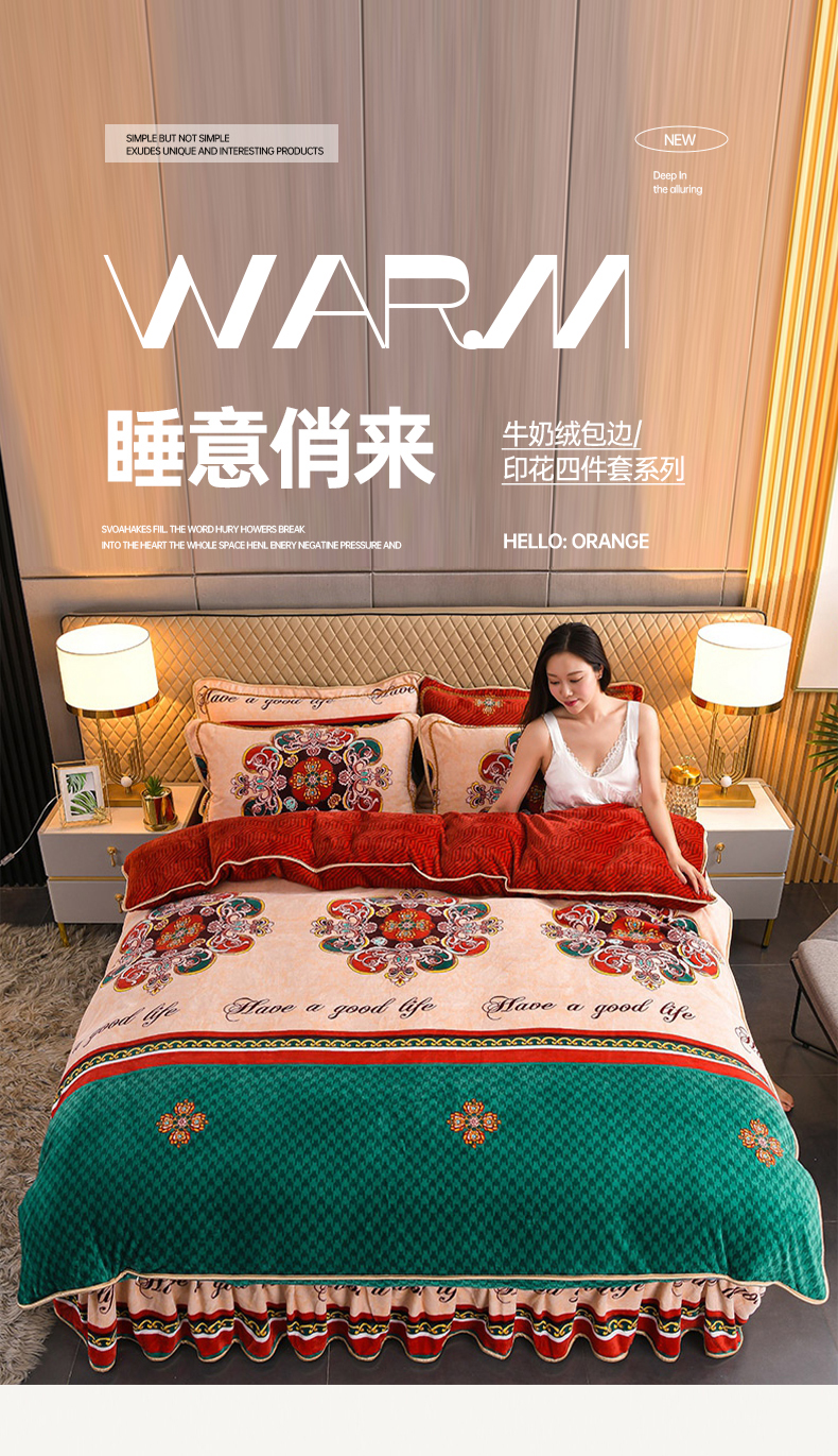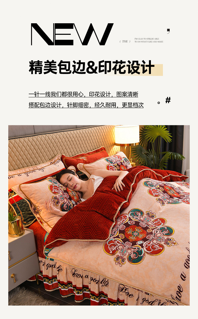 商品名称:牵依 2025新款牛奶绒小包边印花四件套 时尚英伦