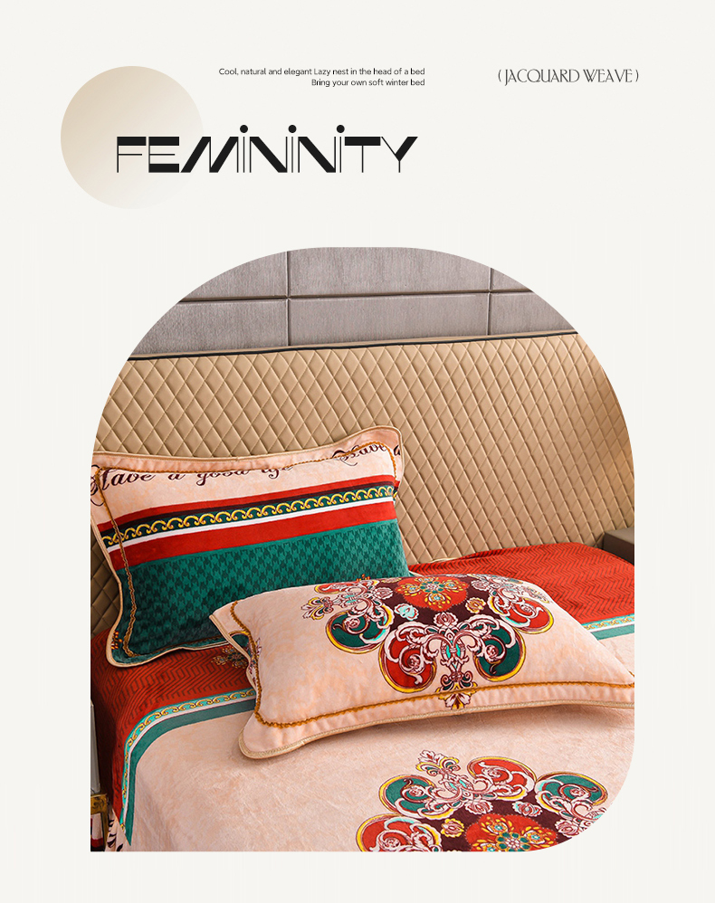 牵依 2025新款牛奶绒小包边印花四件套 时尚英伦