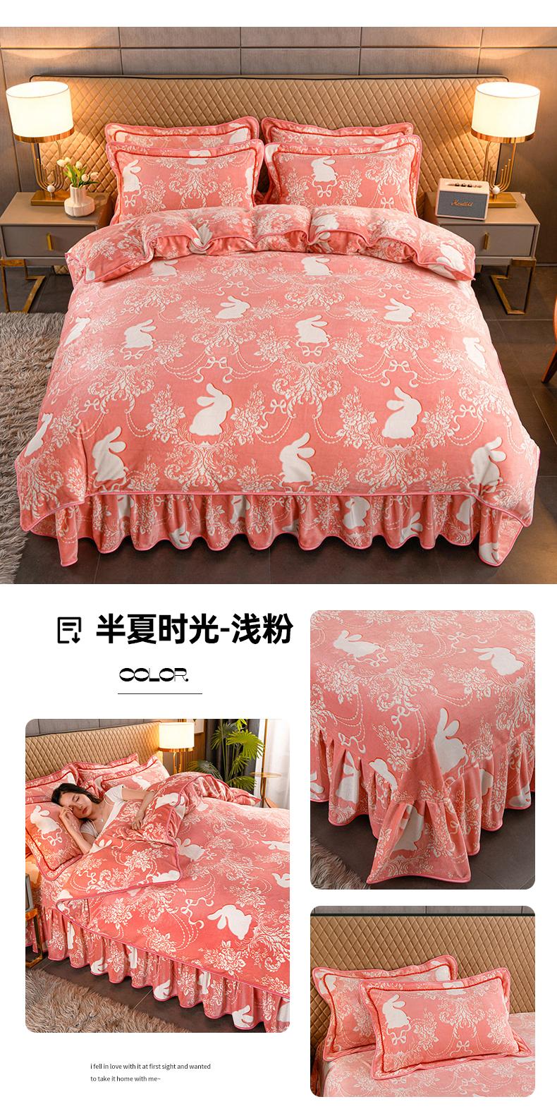 (总)牵依 2025新款高克重牛奶绒四件套,花开漫舞-粉,花开漫舞-绿,浪漫花语-粉,浪漫花语-抹茶绿,小雏菊-绿,小雏菊-浅灰,郁金香-蓝粉,郁金香-浅米黄,月光兔-冰水蓝,月光兔-抹茶绿,月光兔-樱花粉