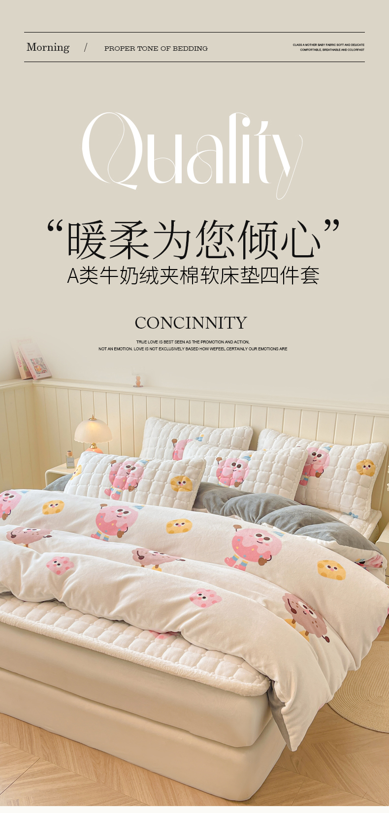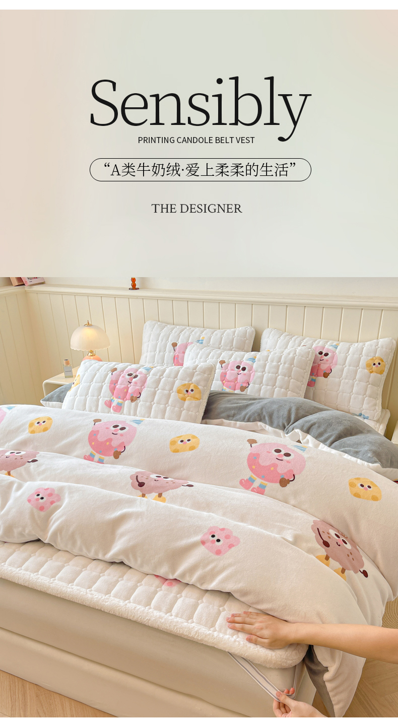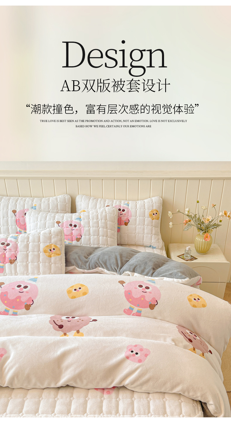 商品名称:LIFE.丽芙 2025秋冬新款A类牛奶绒加厚夹棉床褥垫+被套组合四件套 快乐多巴胺