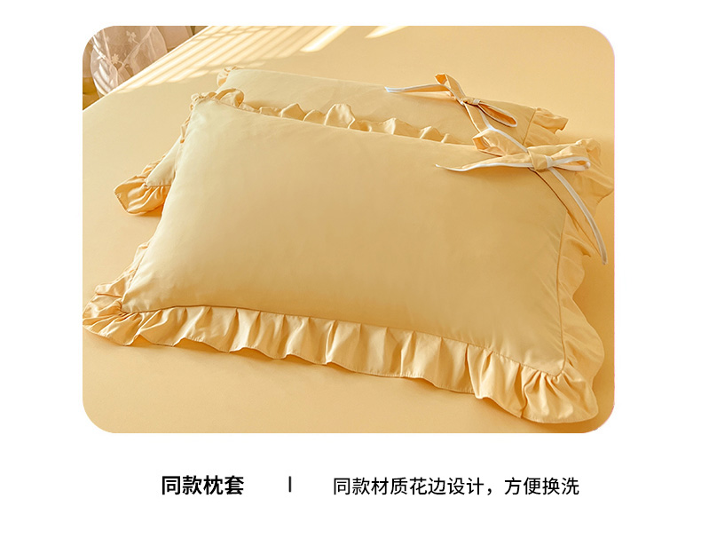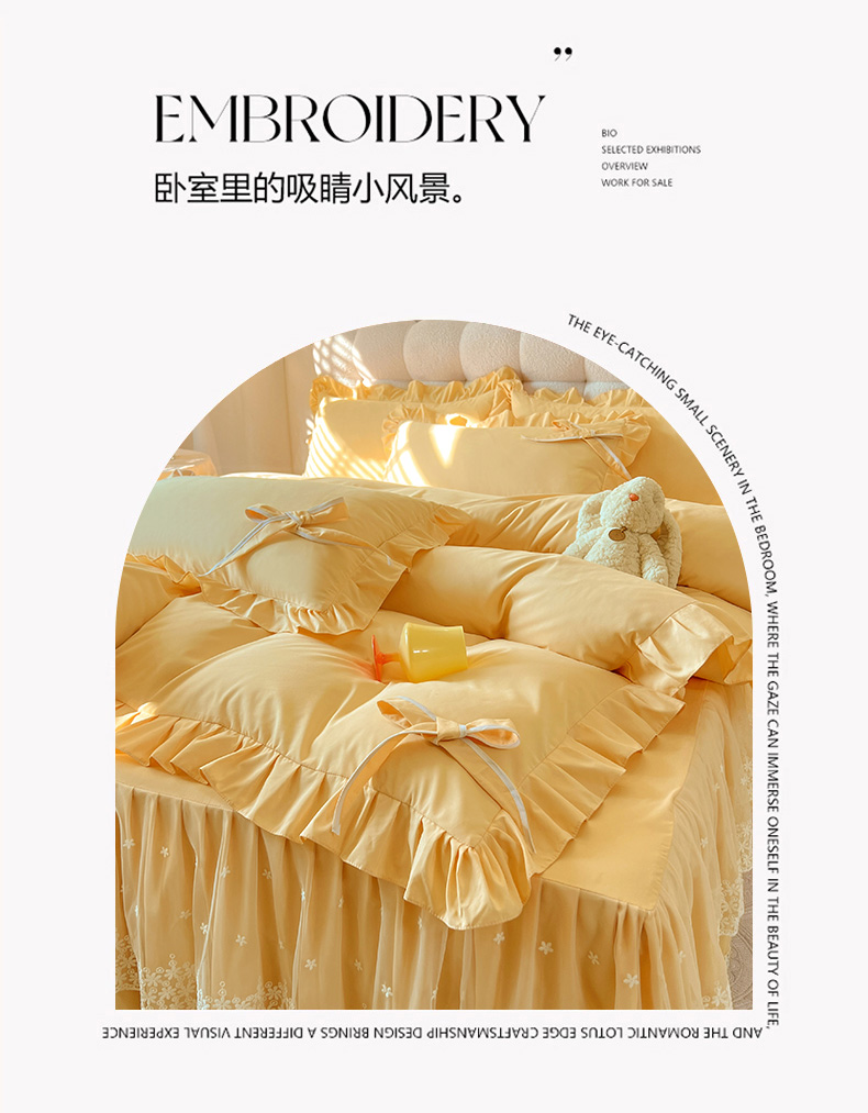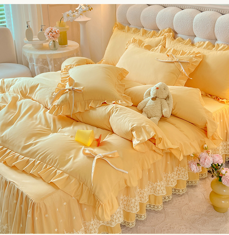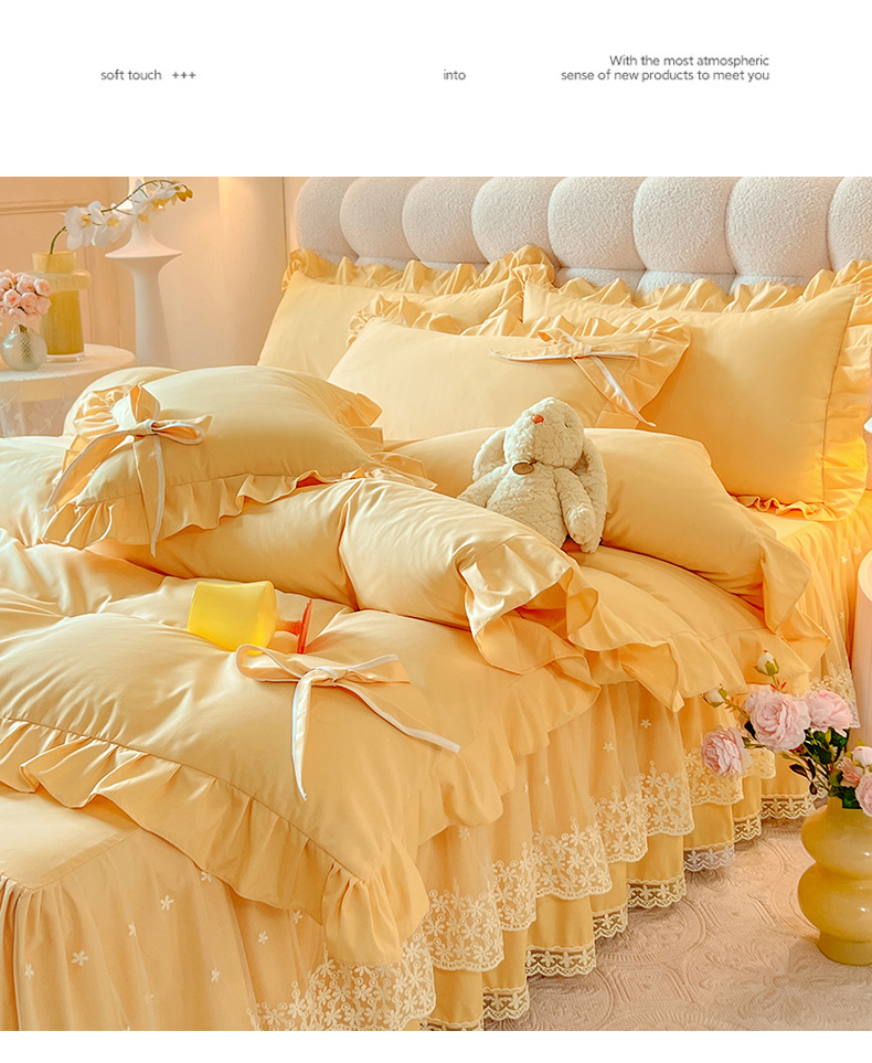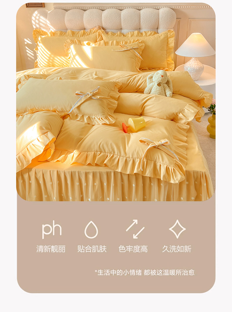 后庭寝室 2025新款亲肤舒适柔软亲肤花边蝴蝶结四件套-如愿 如愿-嫩黄