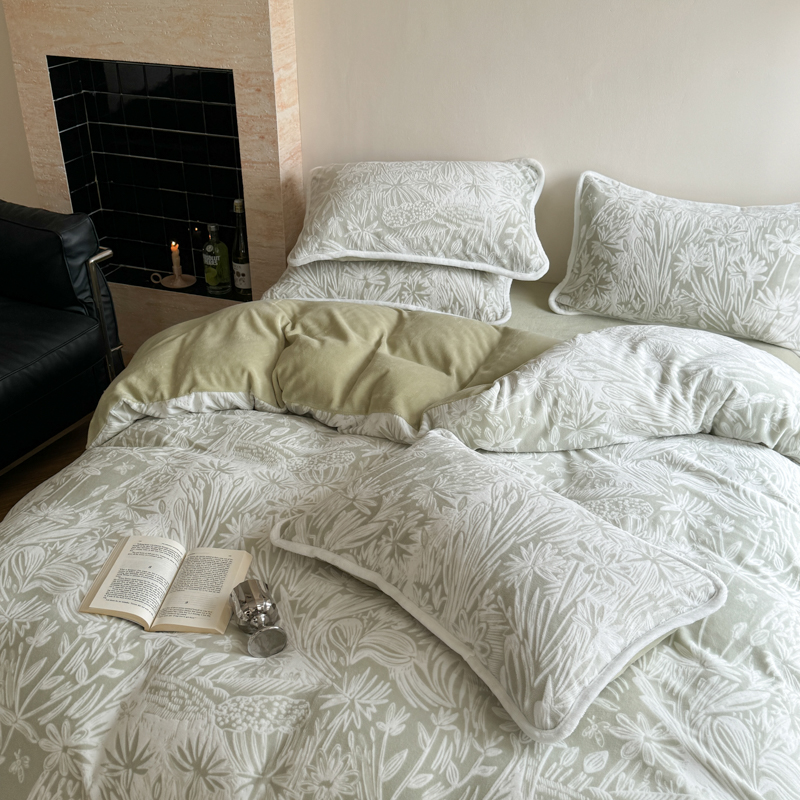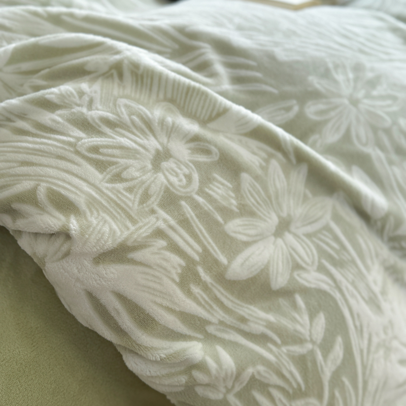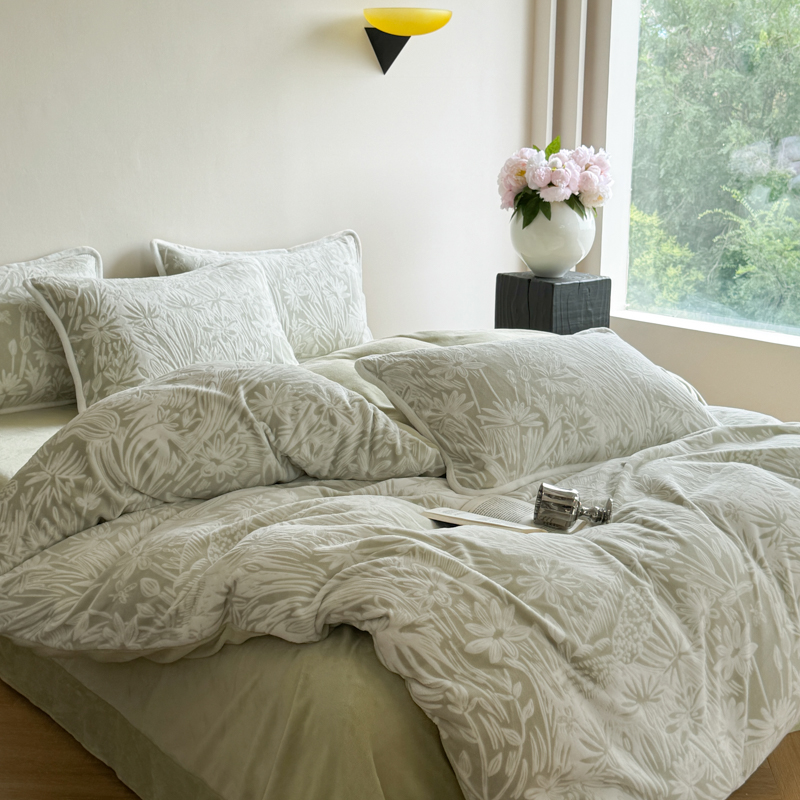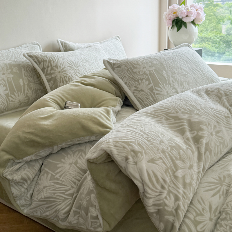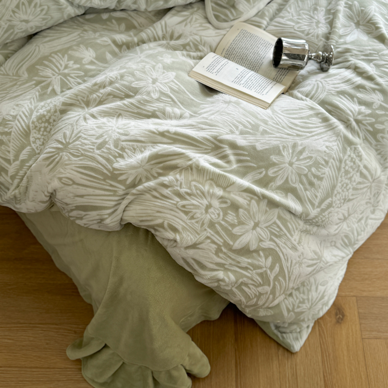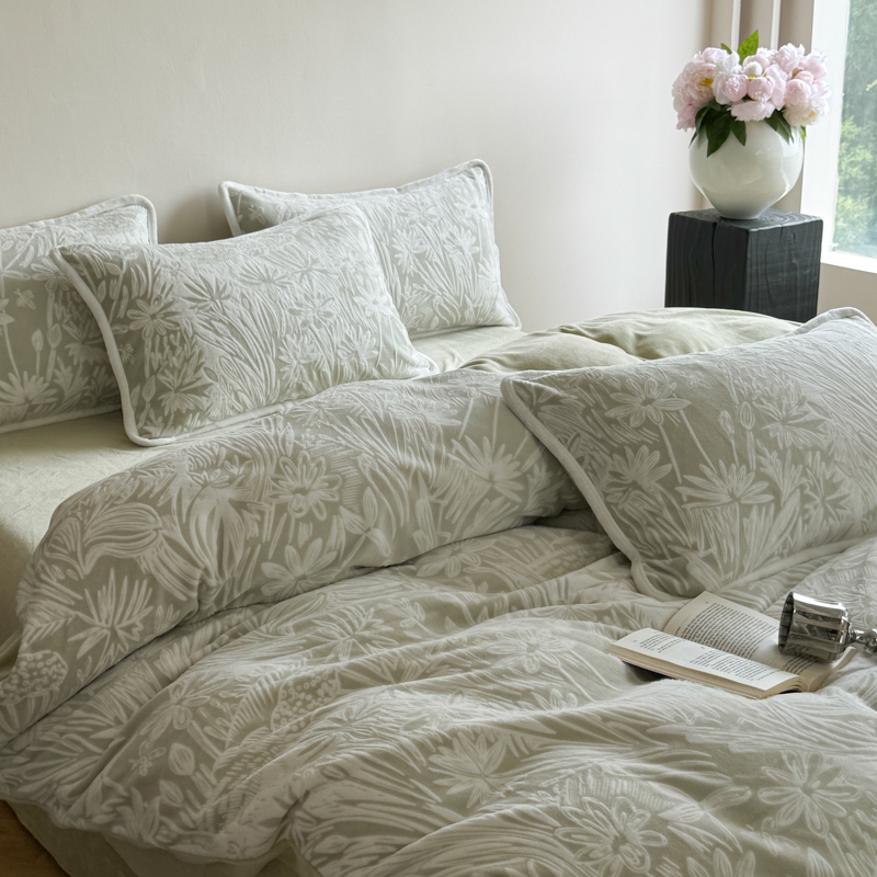 赛丽雅 2025新款包边雕花烂花牛奶绒四件套 花语