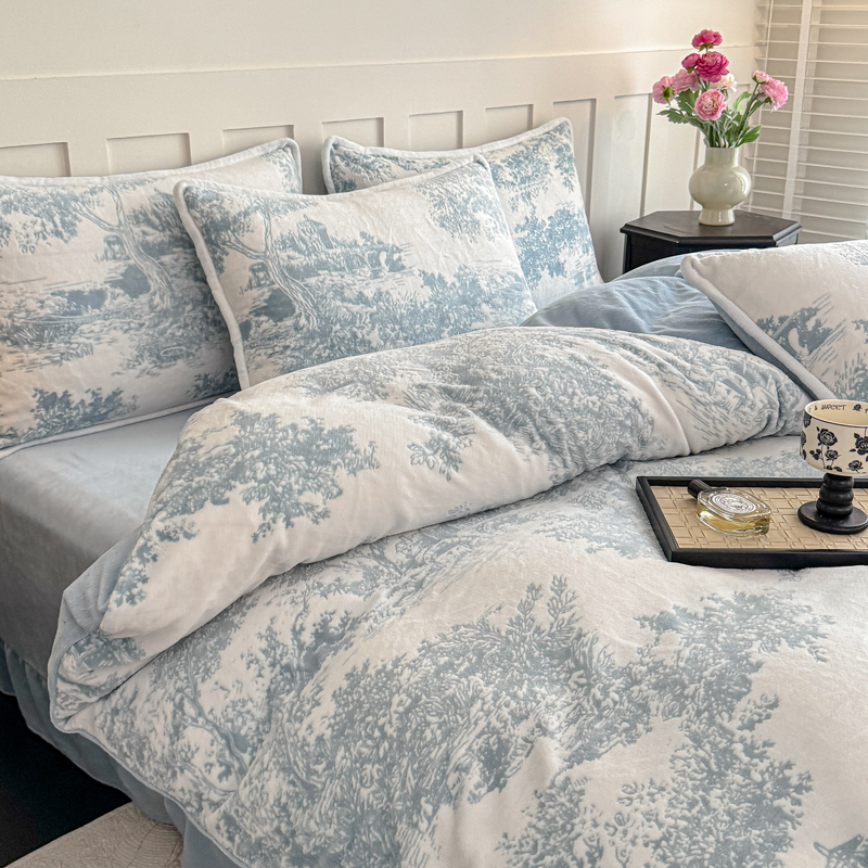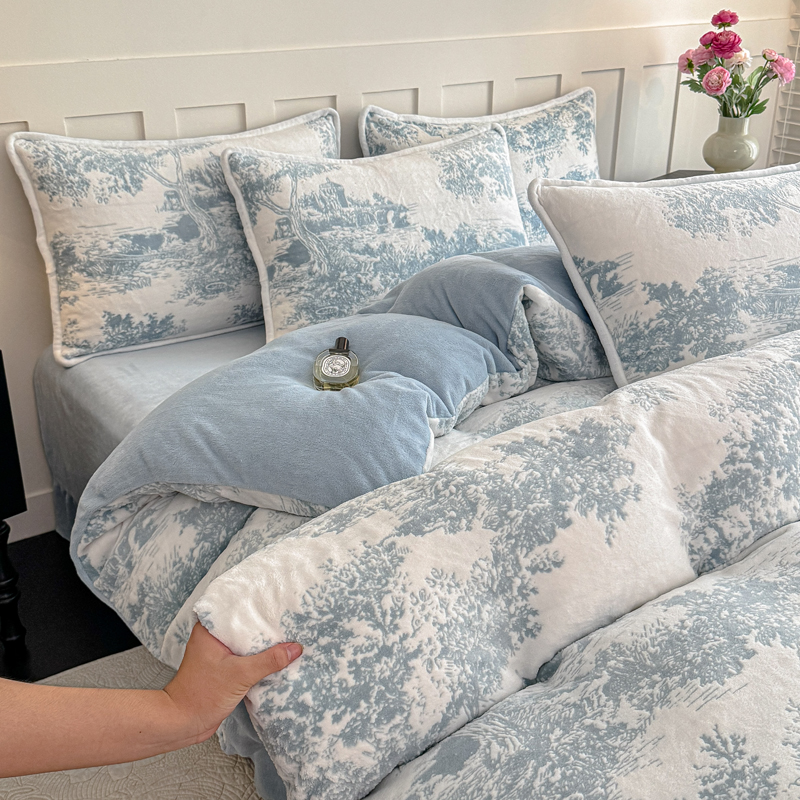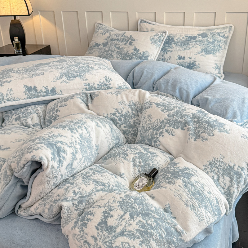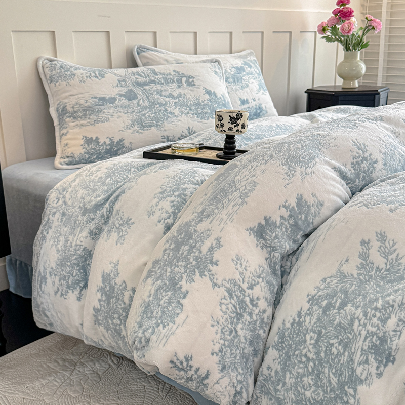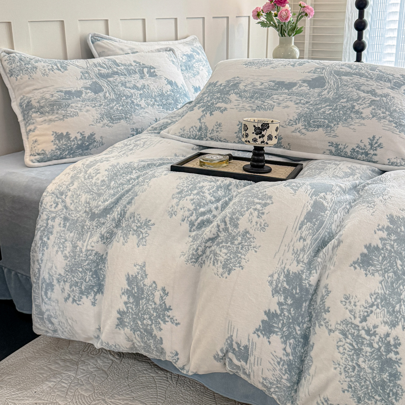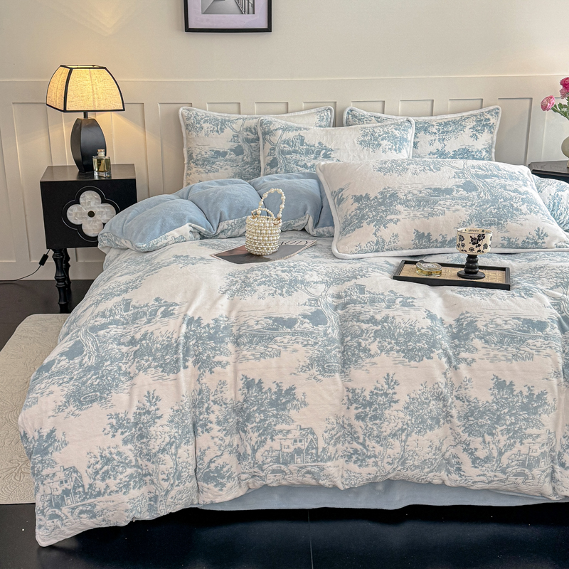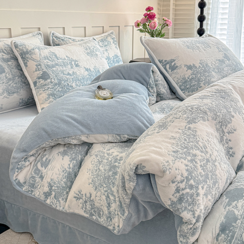 赛丽雅 2025新款包边雕花烂花牛奶绒四件套 云思木想