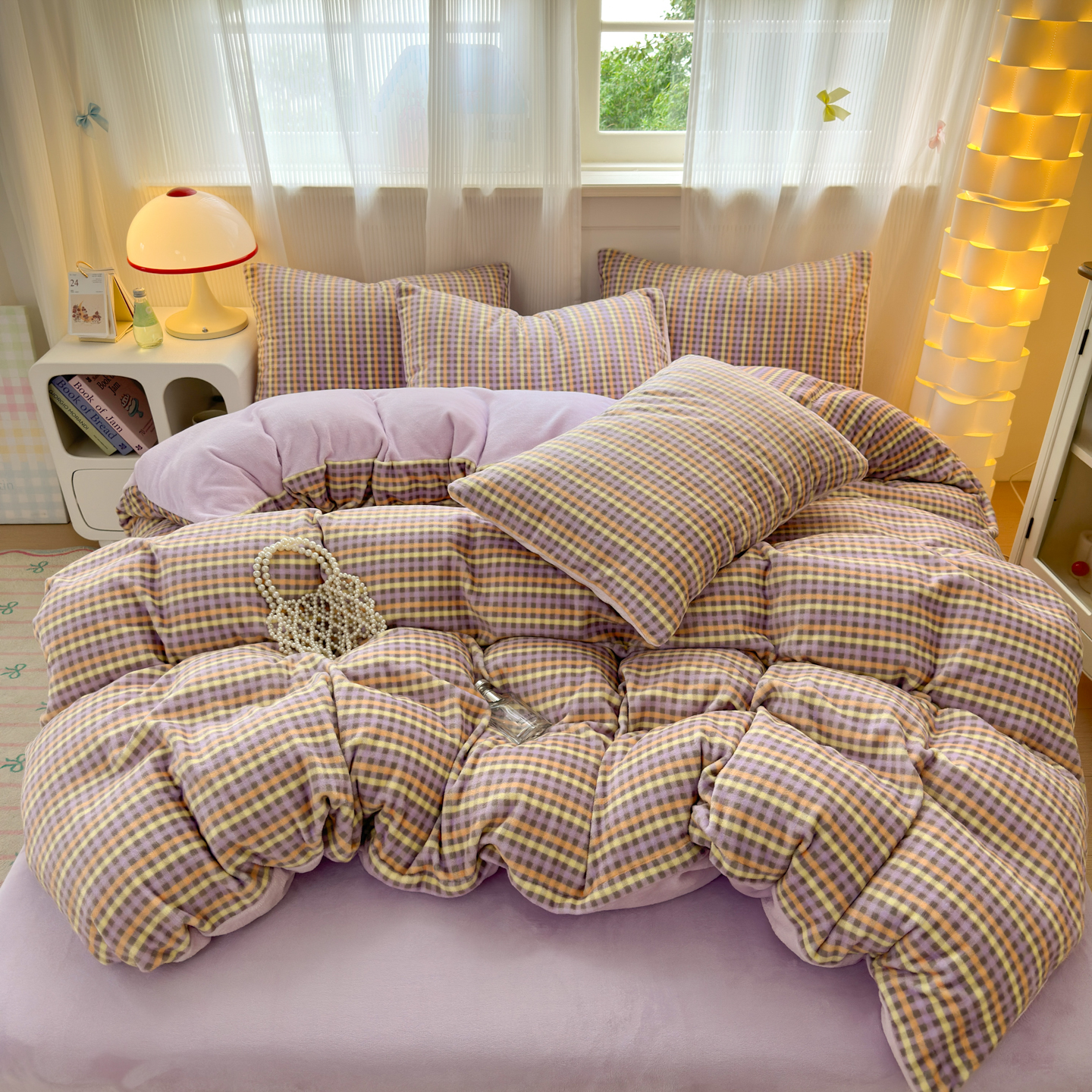 (总)德比尔斯 2025新款暗合印花牛奶绒四件套,爱心-紫,波点-紫,布朗尼,豆蔻-紫,粉格樱桃,蝴蝶结-灰,蝴蝶结-紫,七彩格,紫香草