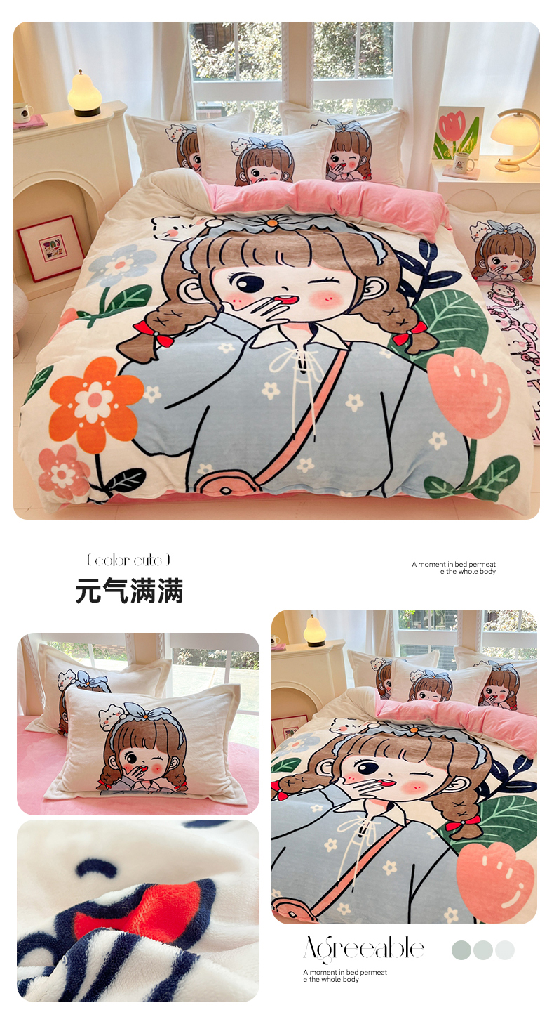 (总)喜梦缘-2025专版加厚高克重卡通大版 牛奶绒四件套大阪法莱绒现货充足