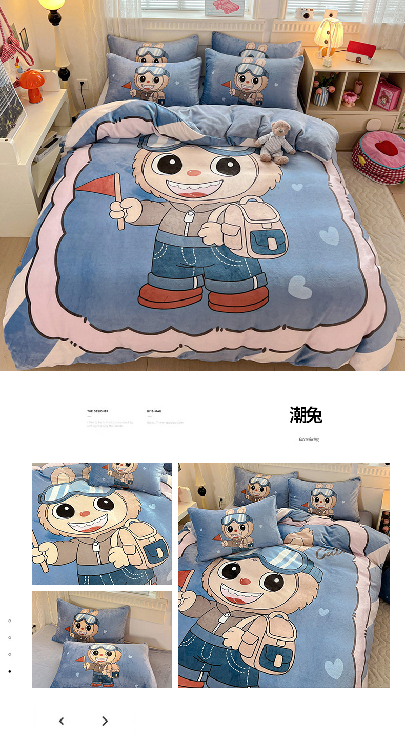 (总)喜梦缘 2025 新款大版卡通牛奶绒印花四件套,比耶狗(有三件套),独角兽,公主兔,梦龙宝贝,草莓熊(有三件套),爱心草莓,萌萌兔(有三件套),彩虹熊,熊先生,元气满满(有三件套),月亮熊,熊猫宝宝,甜心公主,太空漫步(有三件套),快乐猪仔,蛋仔,花儿朵朵,花意,波点熊仔,腊肠派对,猫狗日记,郁金香,旺旺小狗,阳光男孩(有三件套),小獭宝,小酷仔,甜梦,松鼠宝宝,喵咪,酷宝,潮兔