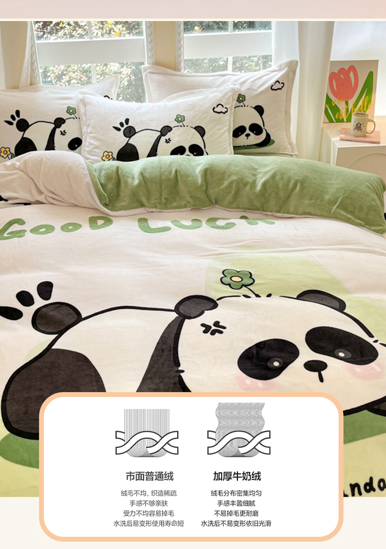 商品名称:喜梦缘 2025年新款大版小版卡通牛奶绒四件套 熊猫宝宝