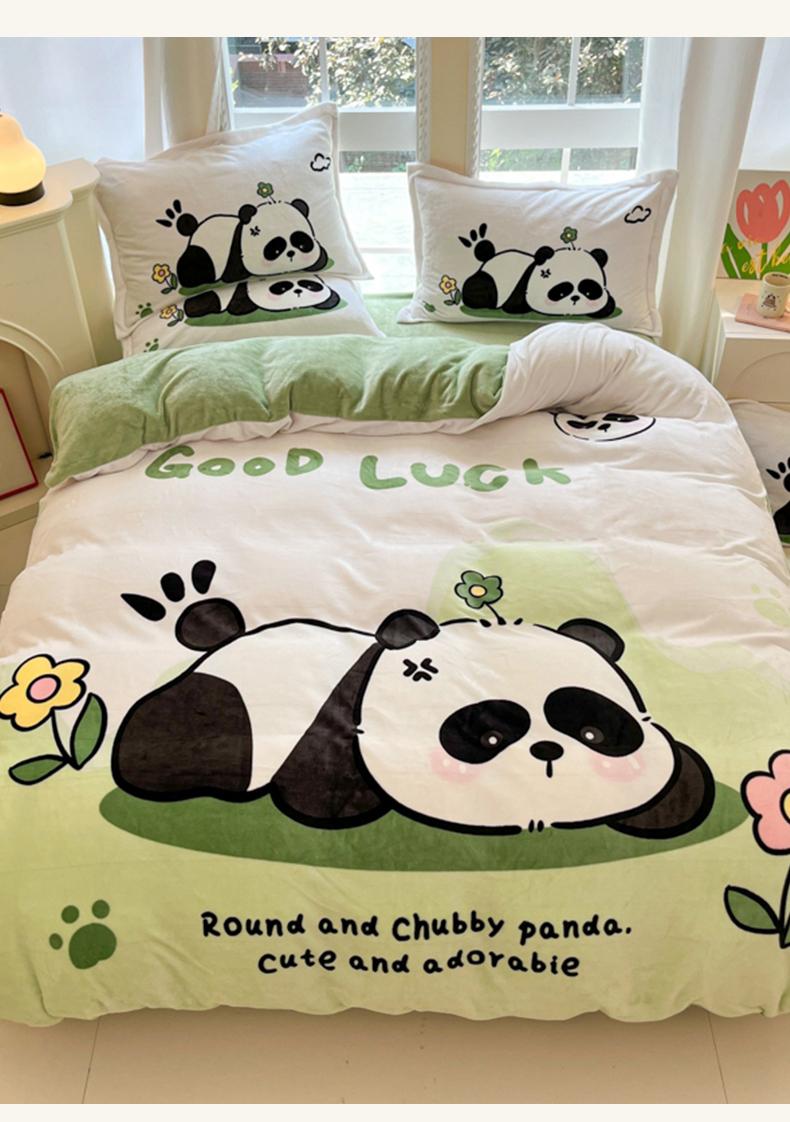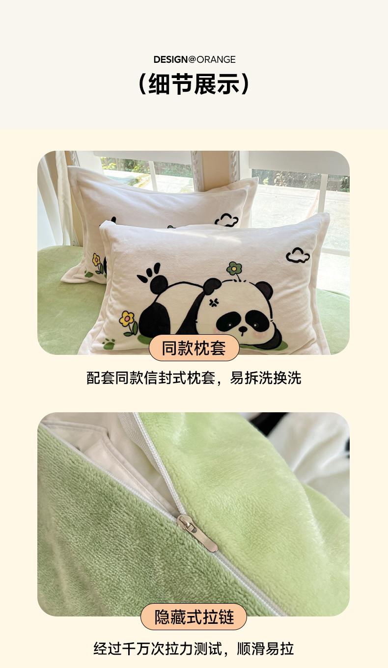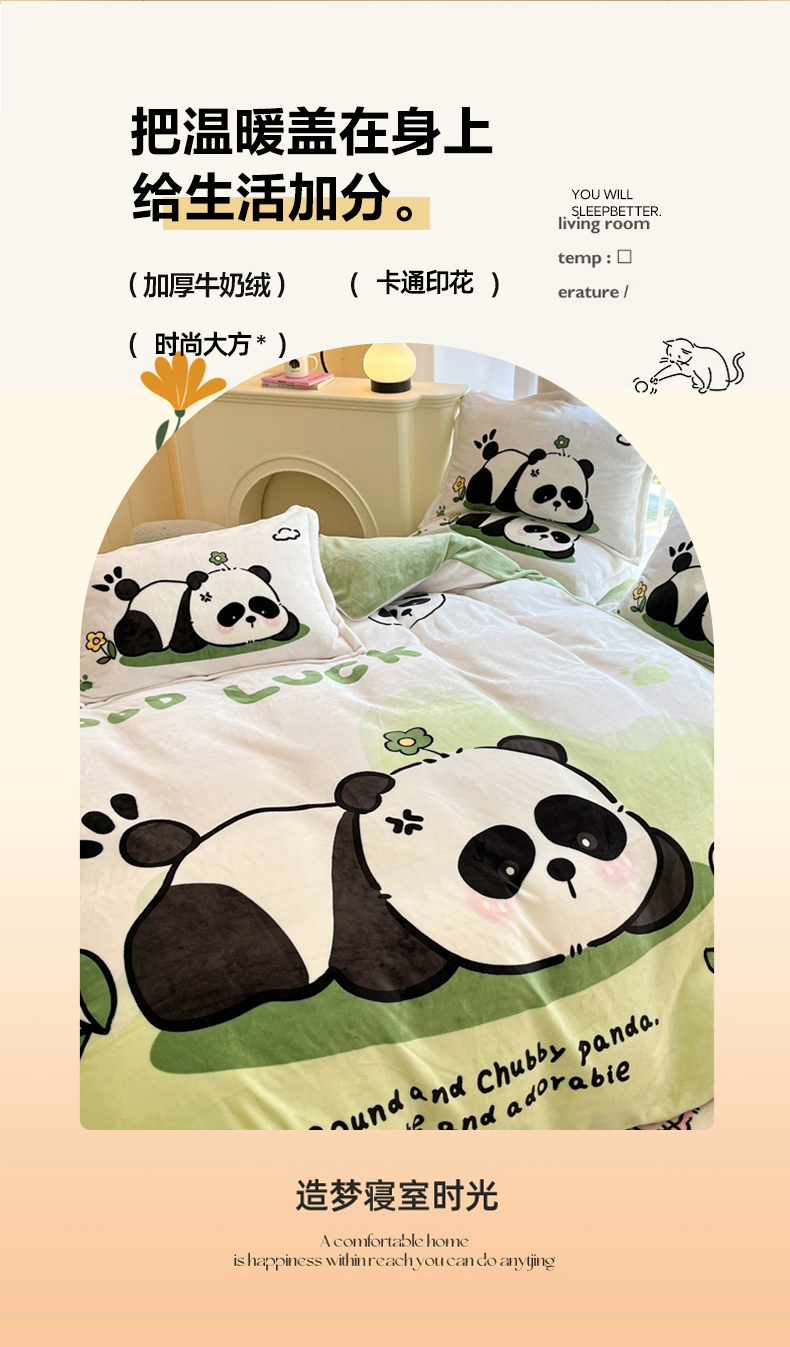 喜梦缘 2025年新款大版小版卡通牛奶绒四件套 熊猫宝宝