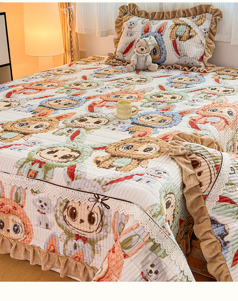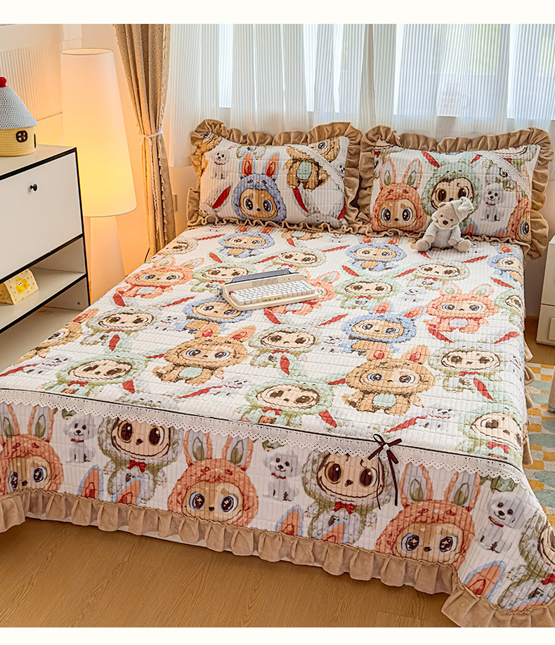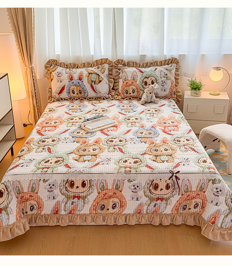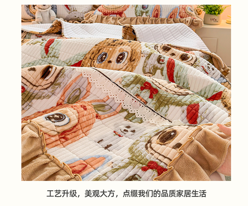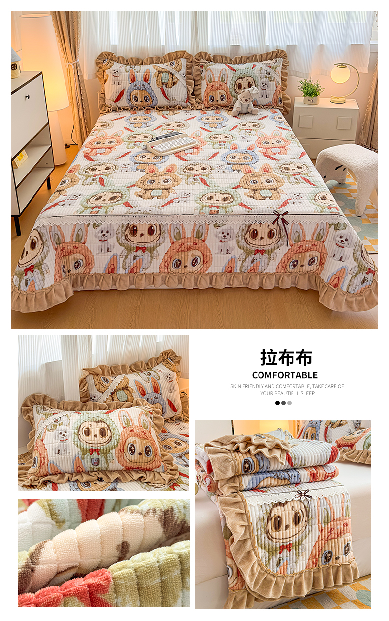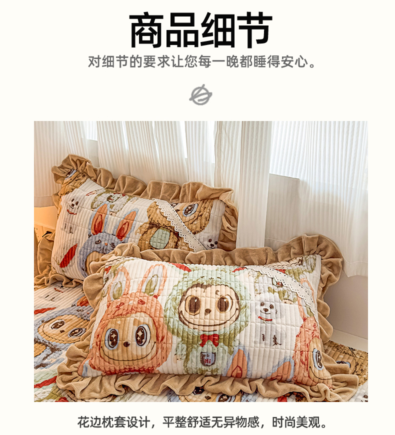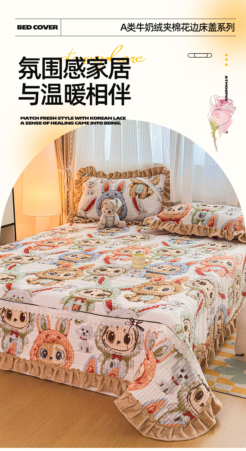 当前位置: 91家纺网 > 商品网购 > 床品套件 > 三件套 > 恒爱家纺 2025新款牛奶绒夹棉花边床盖系列三件套 拉布布