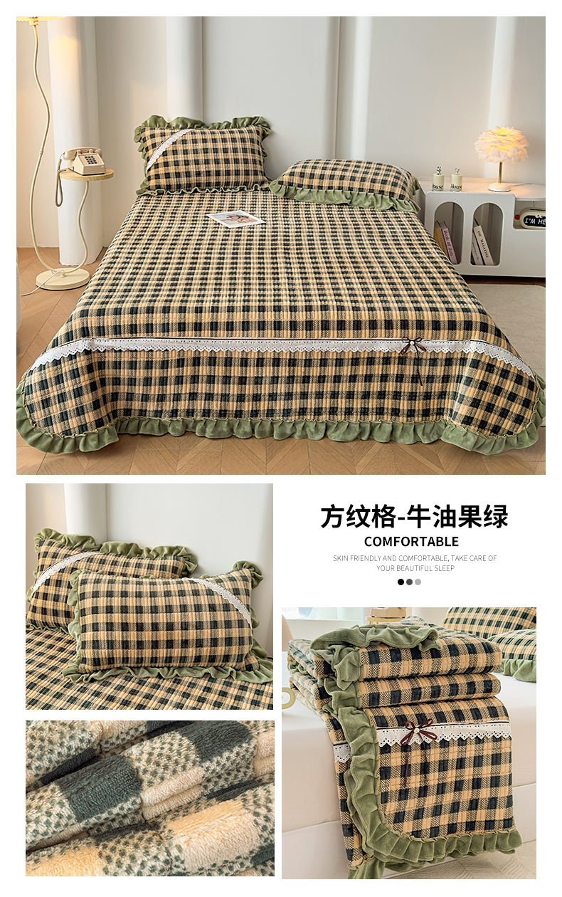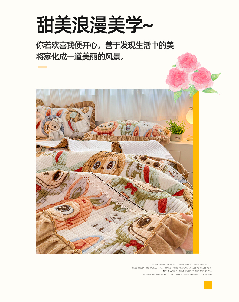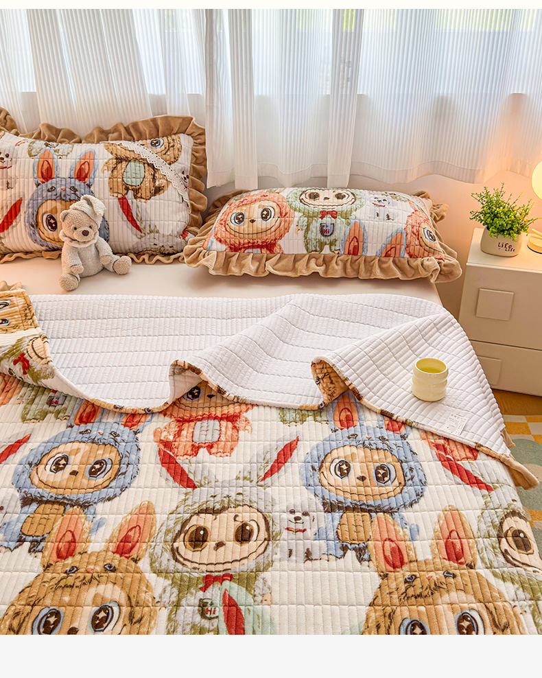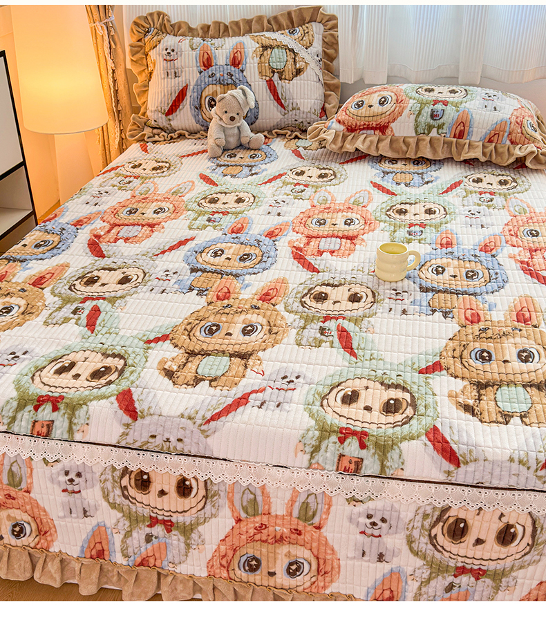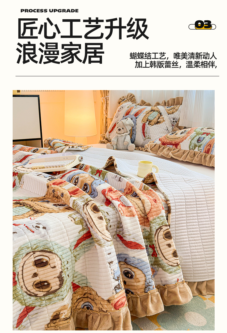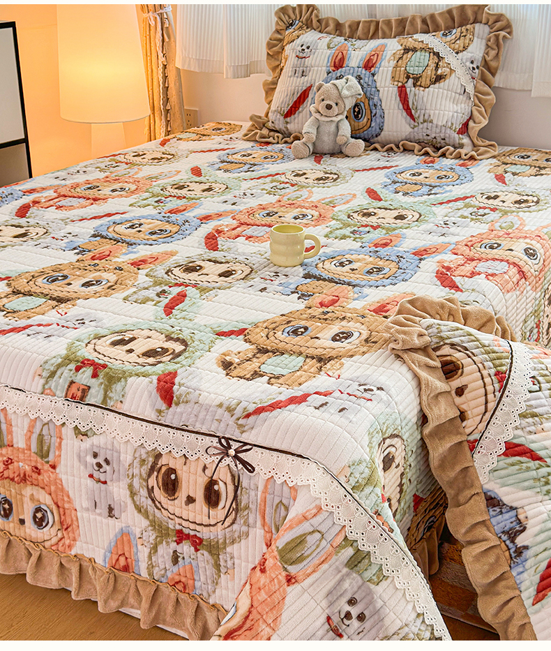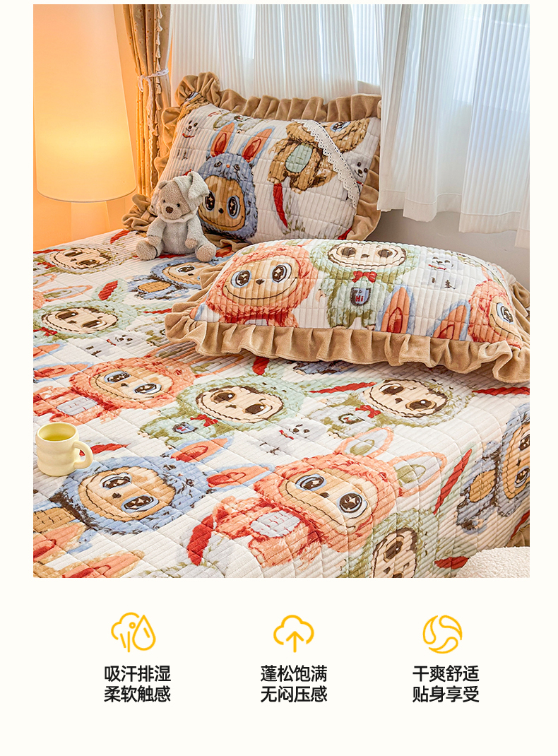 当前位置: 91家纺网 > 商品网购 > 床品套件 > 三件套 > 恒爱家纺 2025新款牛奶绒夹棉花边床盖系列三件套 拉布布