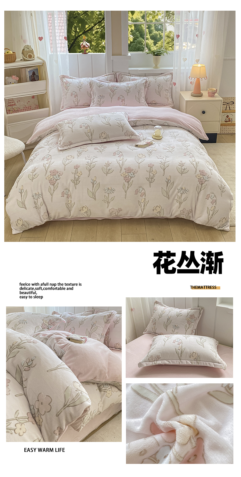 商品名称:卓越家纺 2025新款加厚保暖牛奶绒四件套 柳絮语