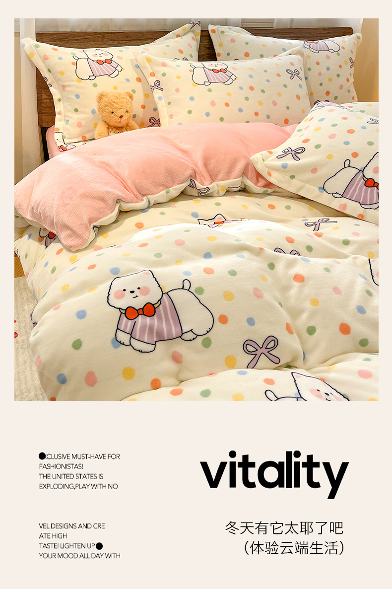 当前位置: 91家纺网 > 商品网购 > 床品套件 > 四件套 > 牛奶绒四件套 > 寻米 2025新款高克重加厚保暖牛奶绒四件套-第一批 彩虹小狗