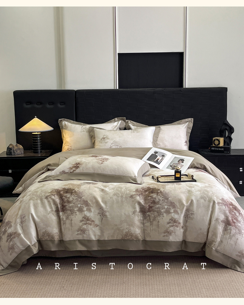 慕晨 2025新款65%莱赛尔32%棉全棉磨毛数码印花宽边高级简奢款中高端四件套直播热款 知艺