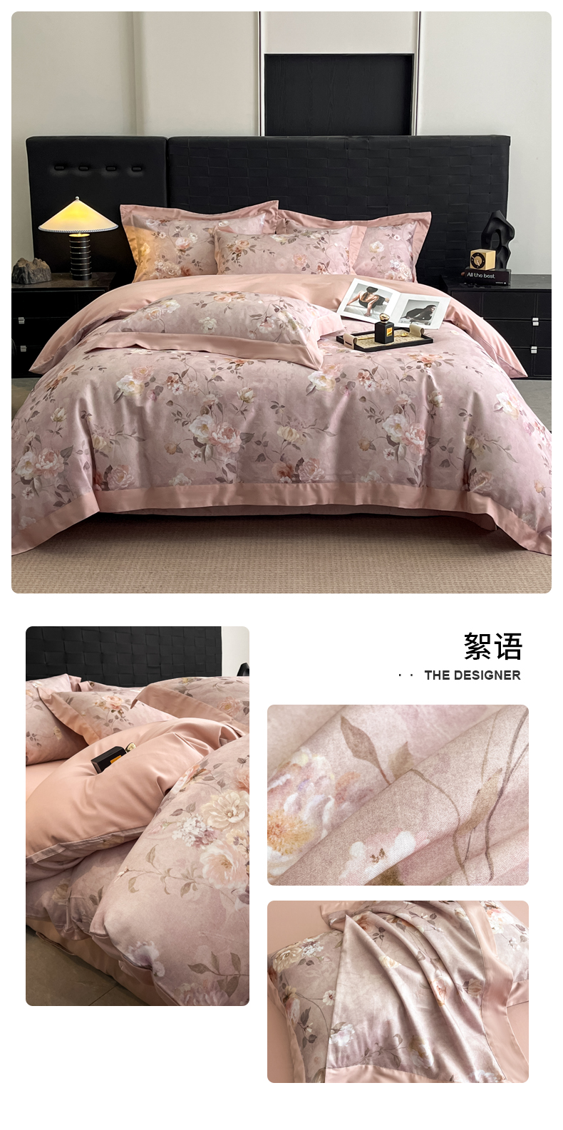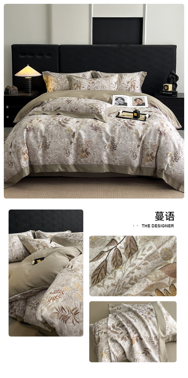 商品名称:慕晨 2025新款65%莱赛尔32%棉全棉磨毛数码印花宽边高级简奢款中高端四件套直播热款 知艺