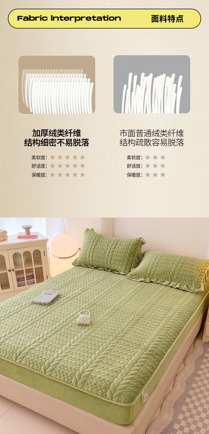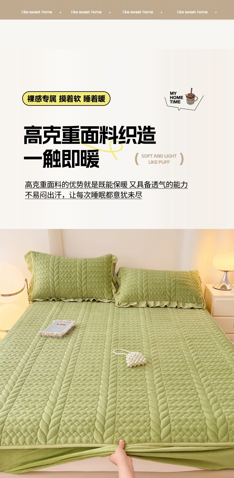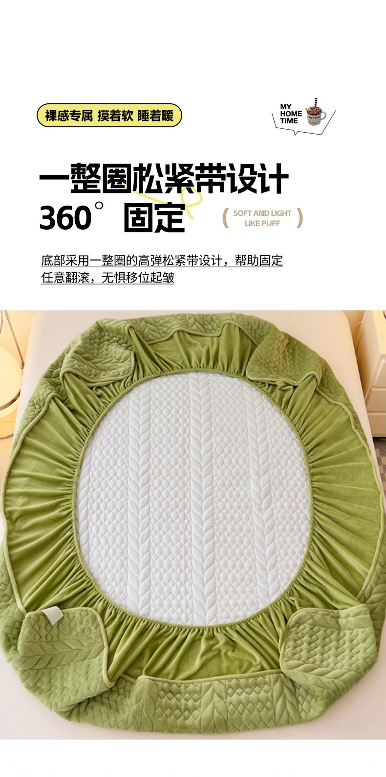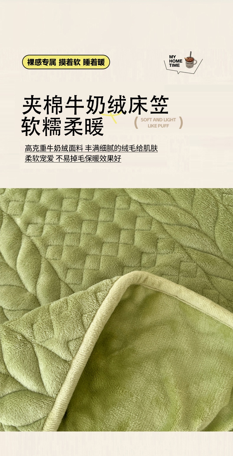 • 91家纺网 家纺一手货源 找家纺 梦舒羽 2025新款牛奶绒夹棉床笠床单床盖床护垫保护罩三件套花边枕套-轻奢 轻奢款-果绿