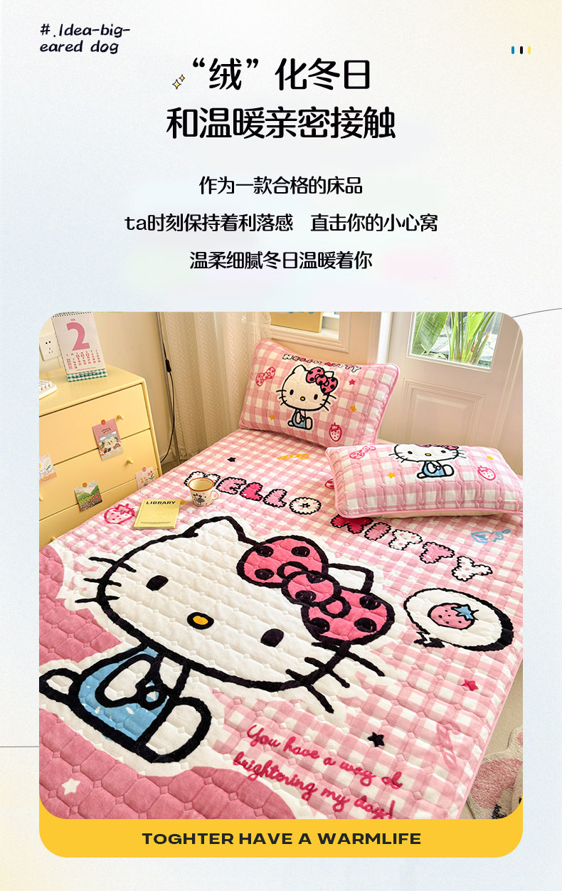 (总)希诺家居 2025新款正版授权大版三丽鸥数码印花牛奶绒四件套,蓝格kt,背包玉桂狗,皇冠库洛米,气球布丁狗,kt小熊