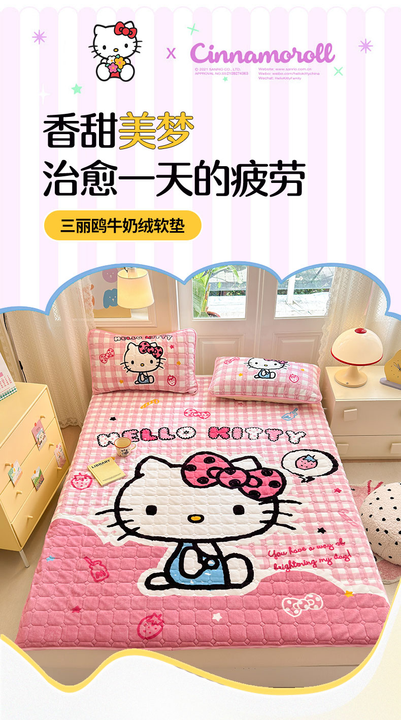 希诺家居 2025新款正版授权三丽鸥大版牛奶绒床垫三件套床褥学生宿舍床垫 星星帕恰狗
