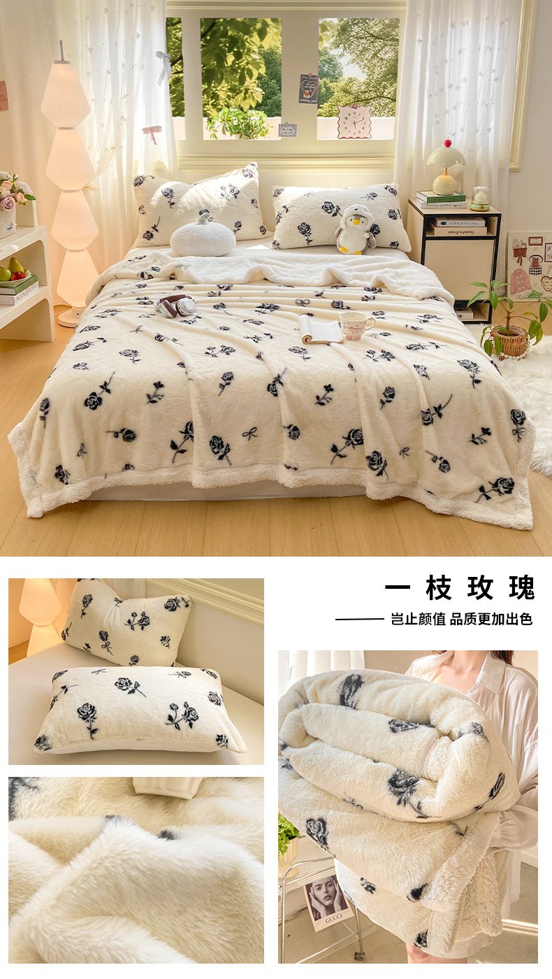 商品名称:眠势力 2025新款兔毛绒毛毯冬季加绒加厚盖毯兔兔绒保暖毯子带拉链-小清新系列 一枝玫瑰