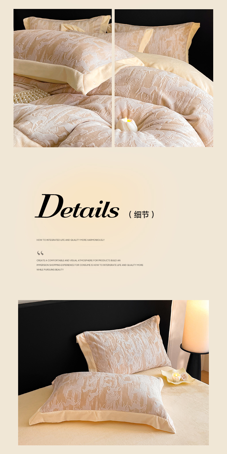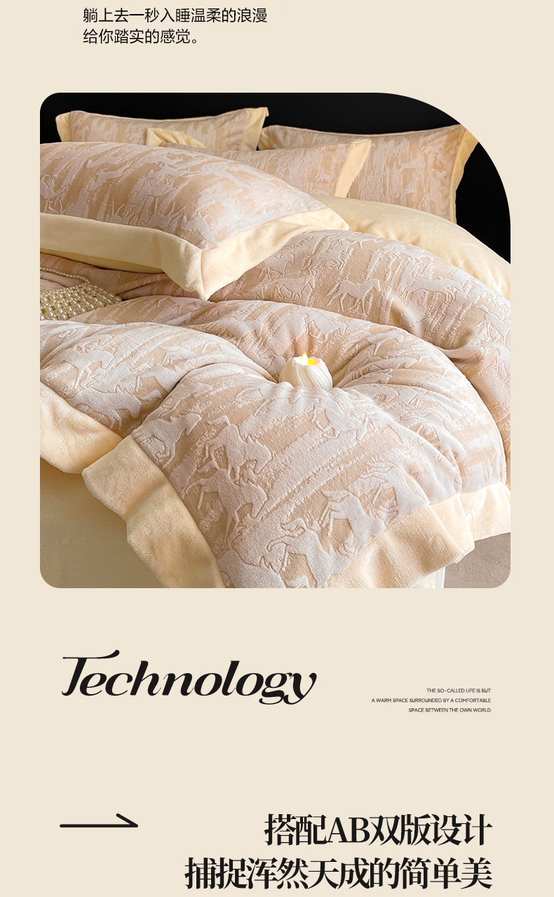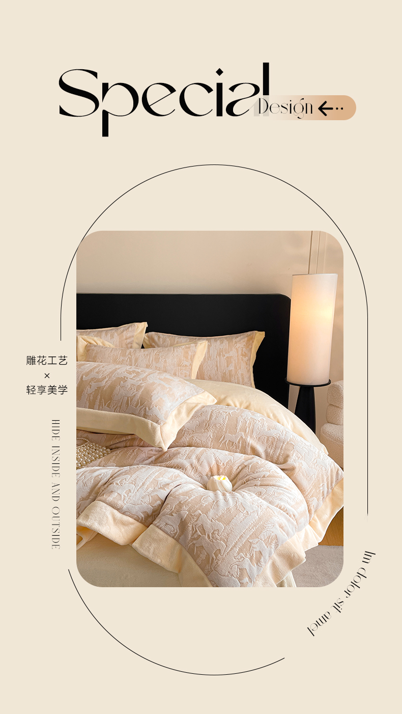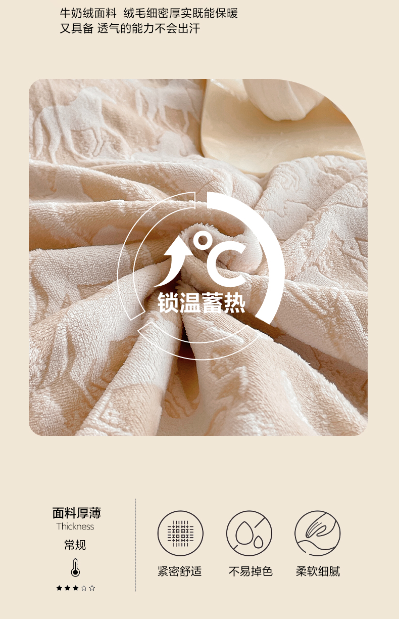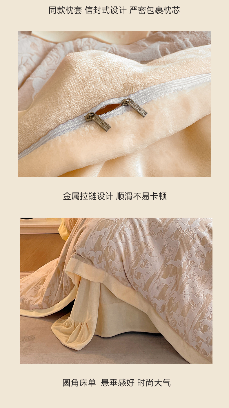 商品名称:民新家纺 2025新款牛奶绒宽包边雕花四件套 英伦骑士-浅米咖
