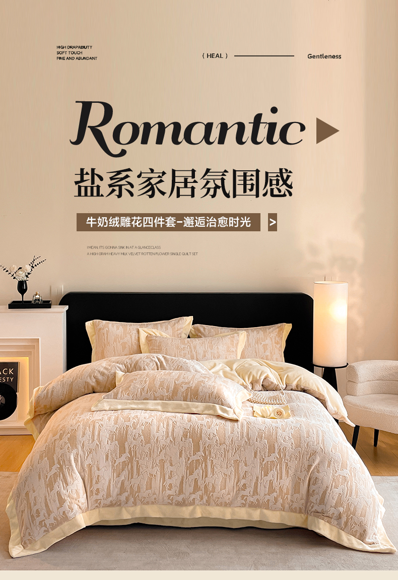(总)民新家纺 2025新款牛奶绒宽包边雕花四件套,永恒之爱-咖,巴黎恋人-浅粉,巴黎恋人-浅灰,巴黎恋人-浅米黄,都市映像-浅灰,都市映像-浅绿,都市映像-燕麦色,英伦骑士-浅绿,英伦骑士-浅米灰,英伦骑士-浅米咖,永恒之爱-暖粉,永恒之爱-羊绒灰