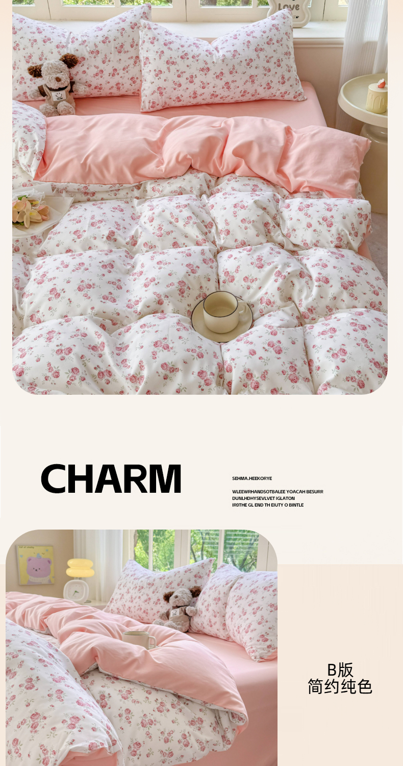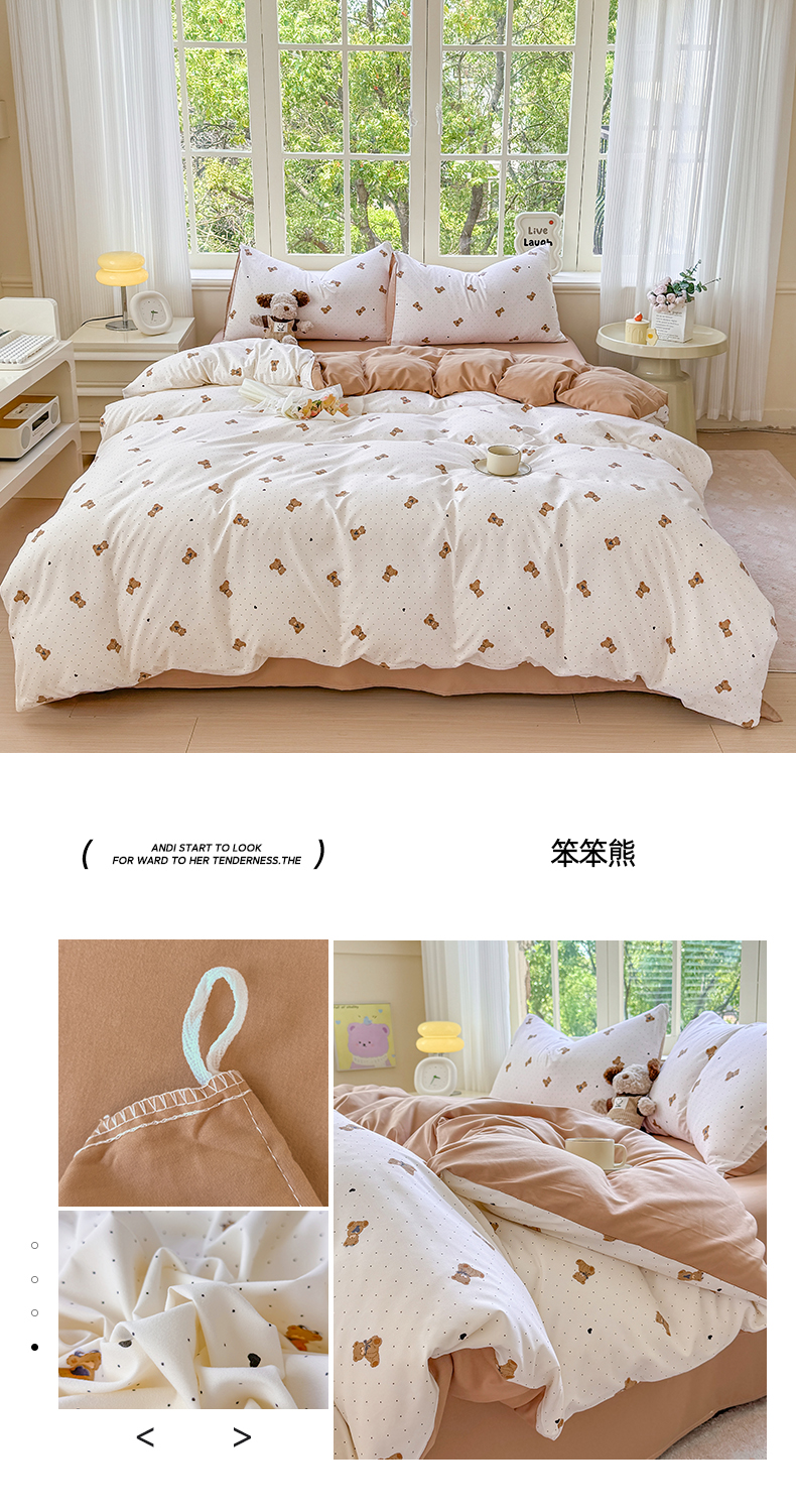 (总)仟岸家纺 2025新款亲肤舒适水洗棉四件套系列,花蜜,百福,笨笨熊,蝶梦,格子樱桃,蝴蝶结,幻彩,可爱樱桃,清禾,元气少女,紫浔,组合图