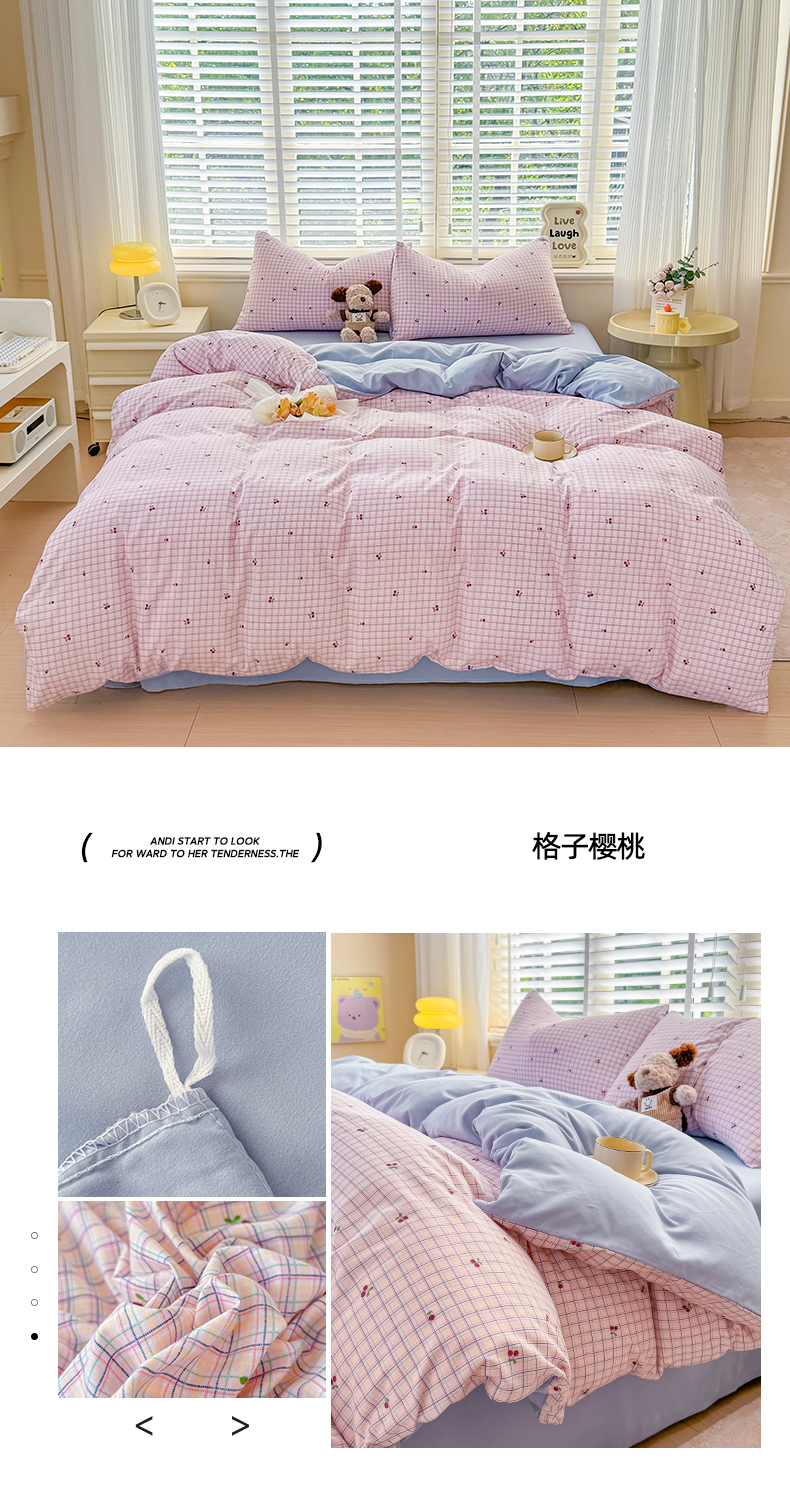 仟岸家纺 2025新款亲肤舒适水洗棉四件套系列 格子樱桃