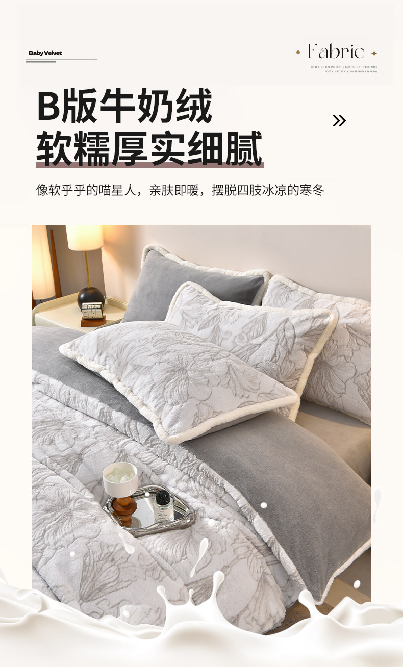 (总)吾诺 兔毛边230克雕花牛奶绒四件套 - 秋意系列,朝花,紫叶,花海,轻羽,飞花,秋意,冬梅,华美,春野