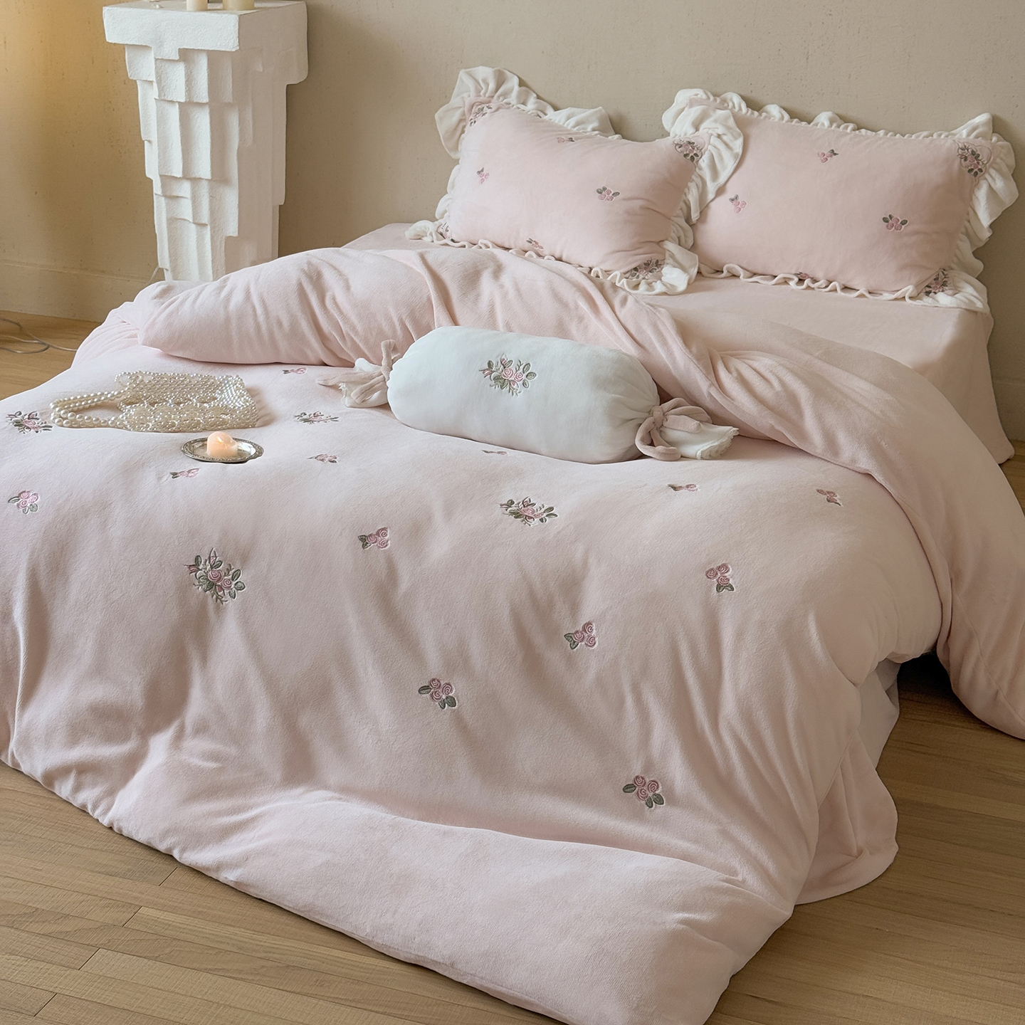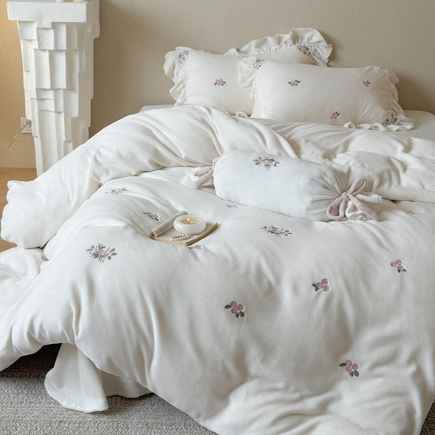 当前位置: 91家纺网 > 商品网购 > 床品套件 > 四件套 > 牛奶绒四件套 > 鹿班家居 2025新款冬季高克重牛奶绒刺绣系列四件套-樱花拾雪(标准会员-10元) 白色