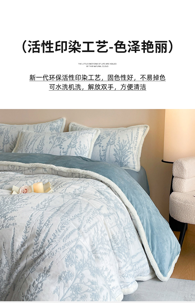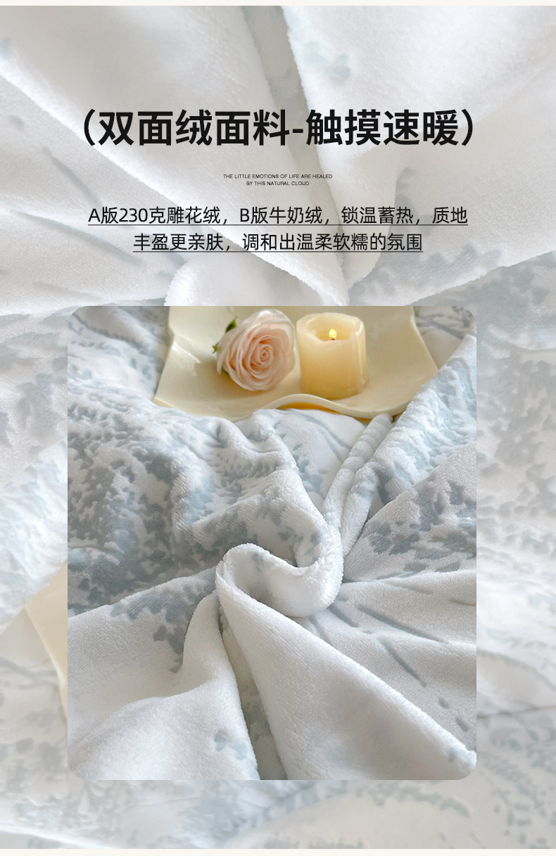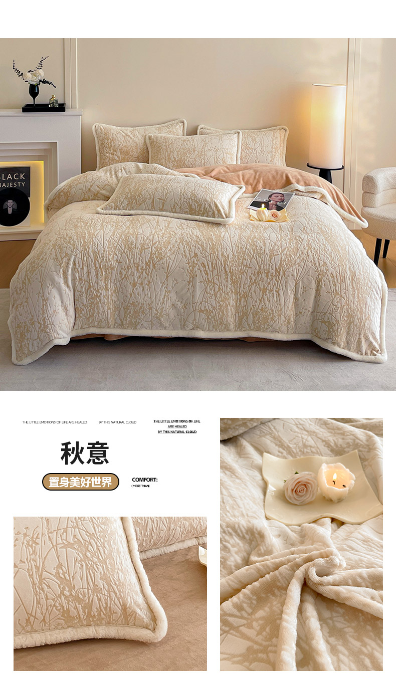 (总)吾诺 兔毛边230克雕花牛奶绒四件套 - 秋意系列,朝花,紫叶,花海,轻羽,飞花,秋意,冬梅,华美,春野