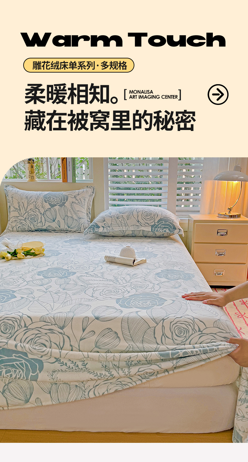 当前位置: 91家纺网 > 商品网购 > 床上用品 > 床单 > 名兮-2025新款秋冬加厚立体高克重浮雕绒床单款 朵美-蓝