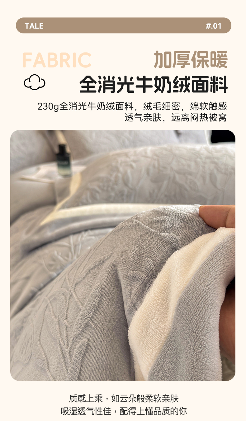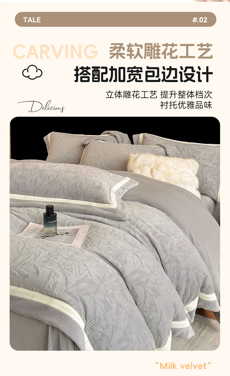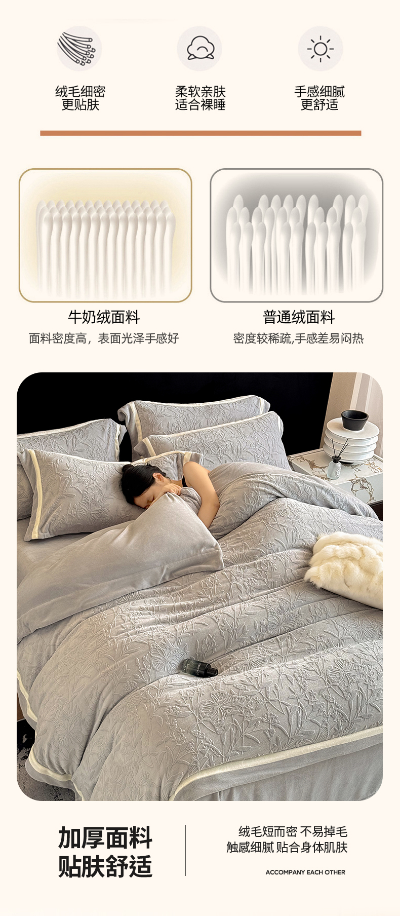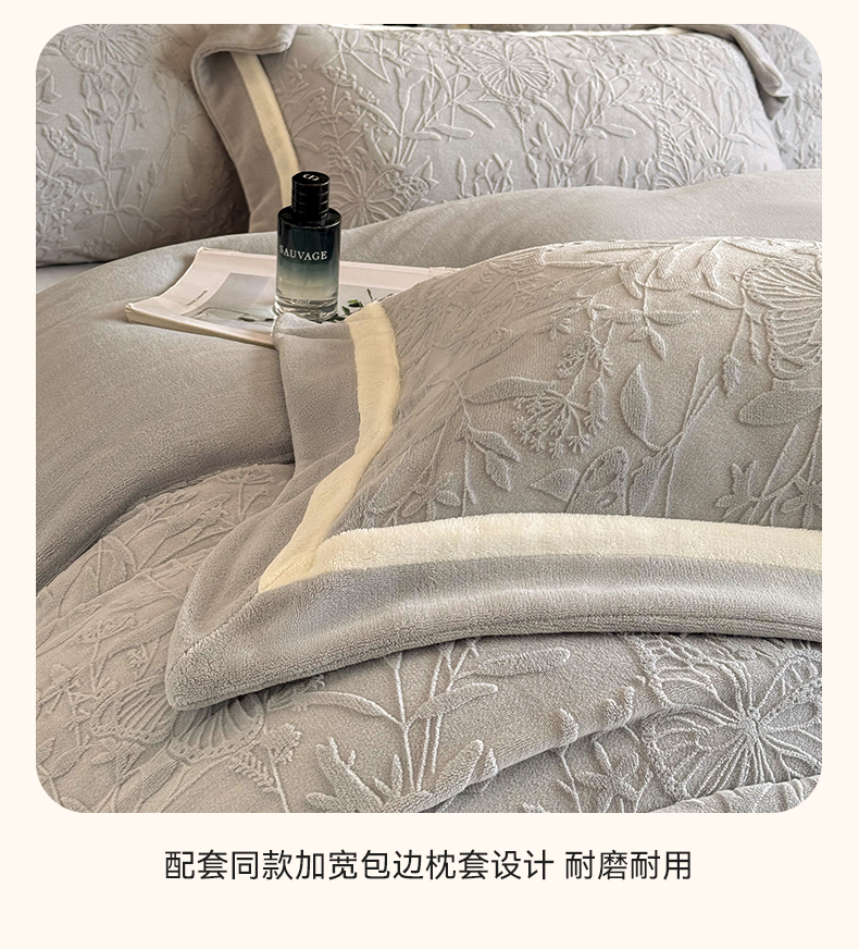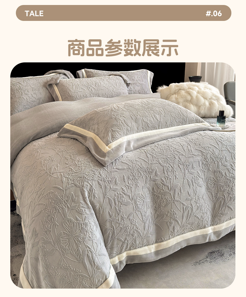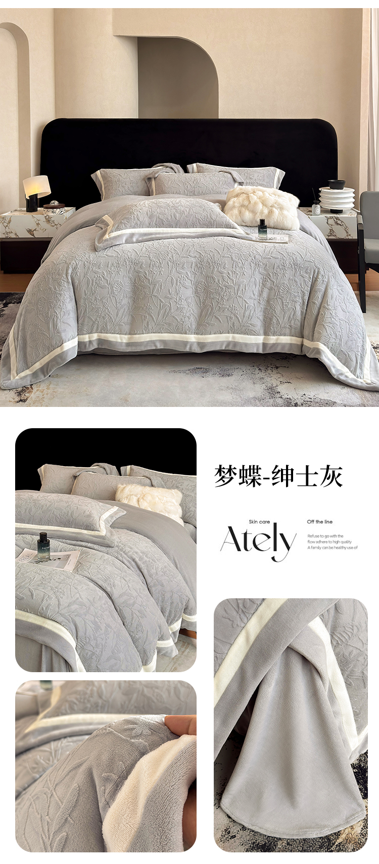 商品名称:家居1号家纺 2025新款230克全消光牛奶绒四件套-梦蝶 梦蝶-绅士灰