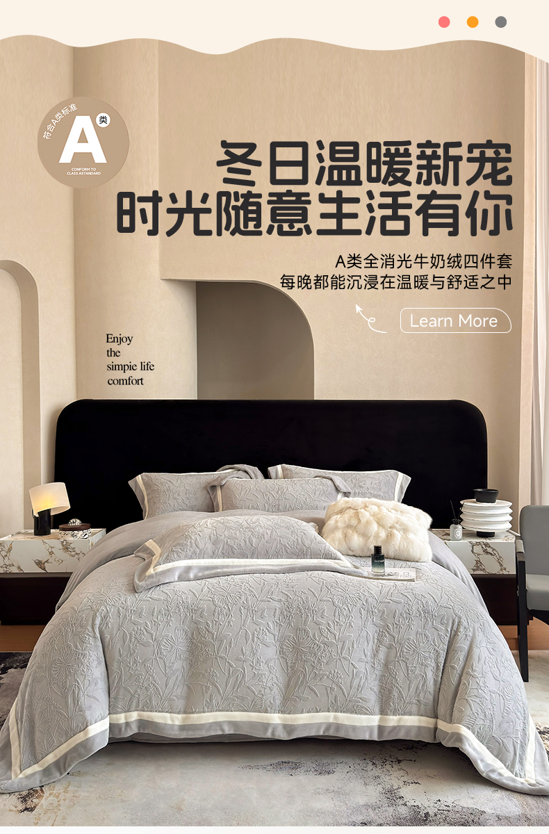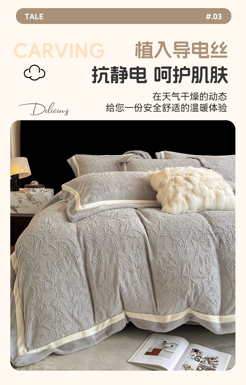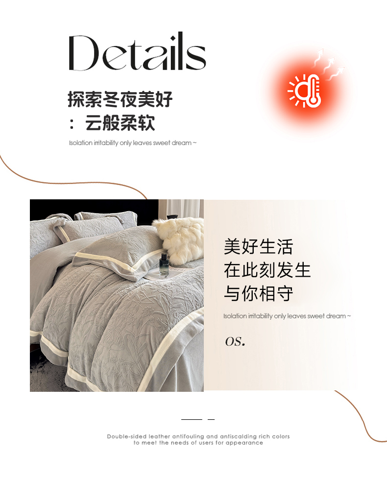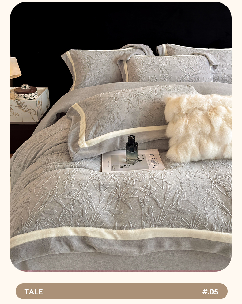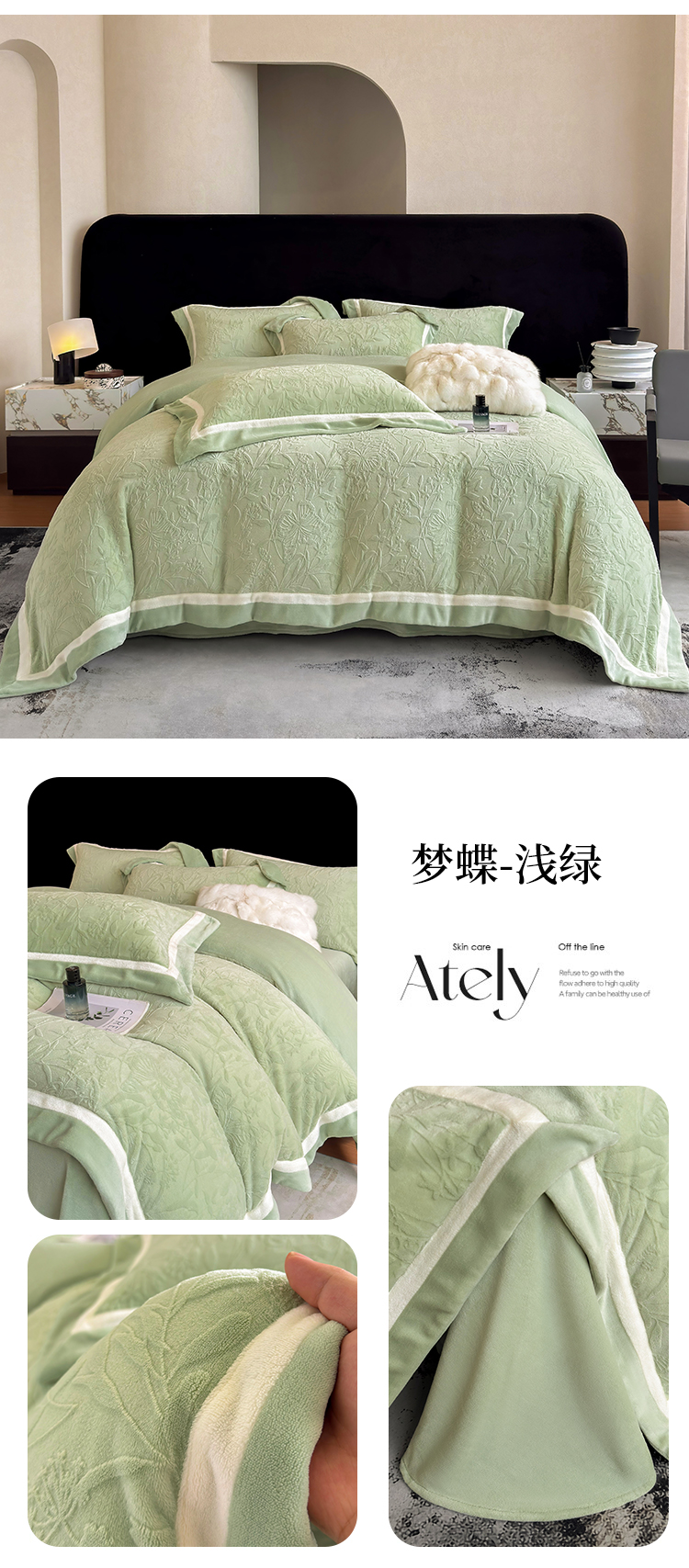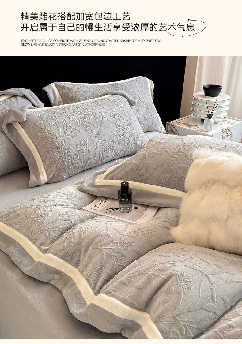 商品名称:家居1号家纺 2025新款230克全消光牛奶绒四件套-梦蝶 梦蝶-绅士灰