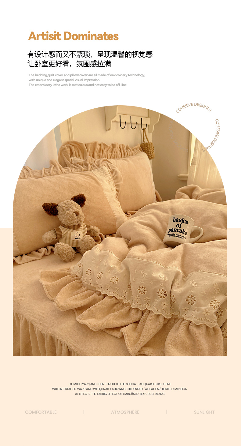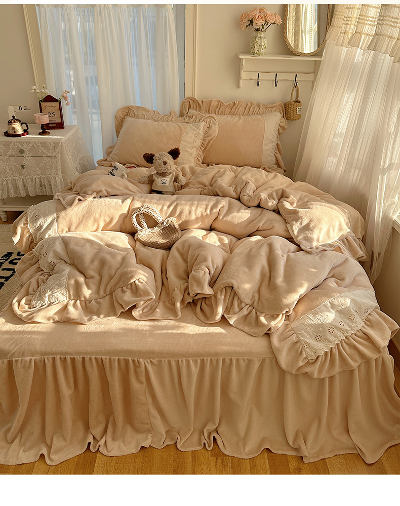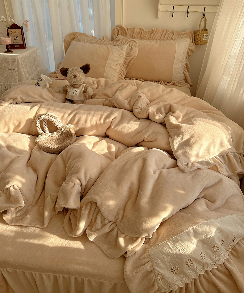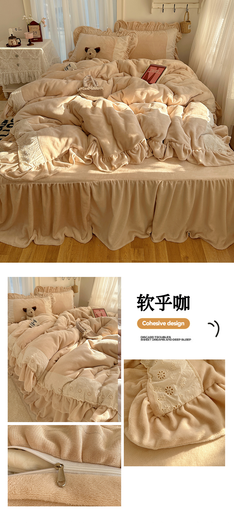当前位置: 91家纺网 > 商品网购 > 床品套件 > 四件套 > 牛奶绒四件套 > 轻奢坊 2025新款牛奶绒纯色全棉蕾丝大花边四件套-软乎系列 软乎紫