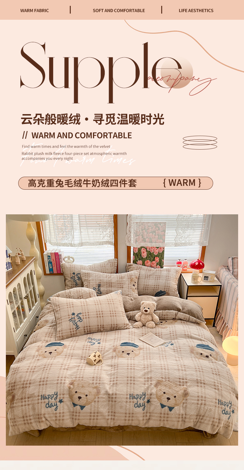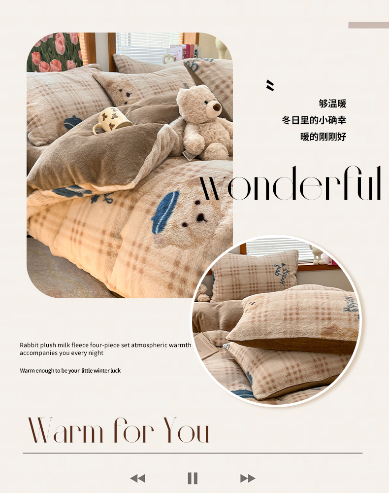 当前位置: 91家纺网 > 商品网购 > 床品套件 > 四件套 > 其它四件套 > 妖妖家纺 2025新款加厚印花兔毛绒保暖四件套 萌萌奶熊